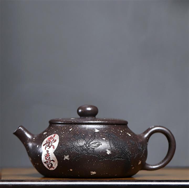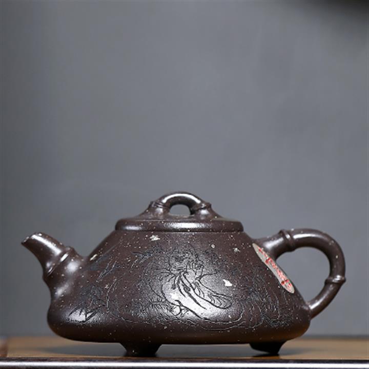 紫砂壺高石瓢刻繪半手工茶壺POT4002