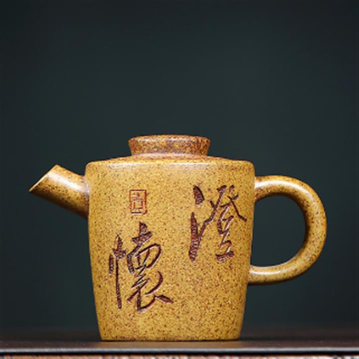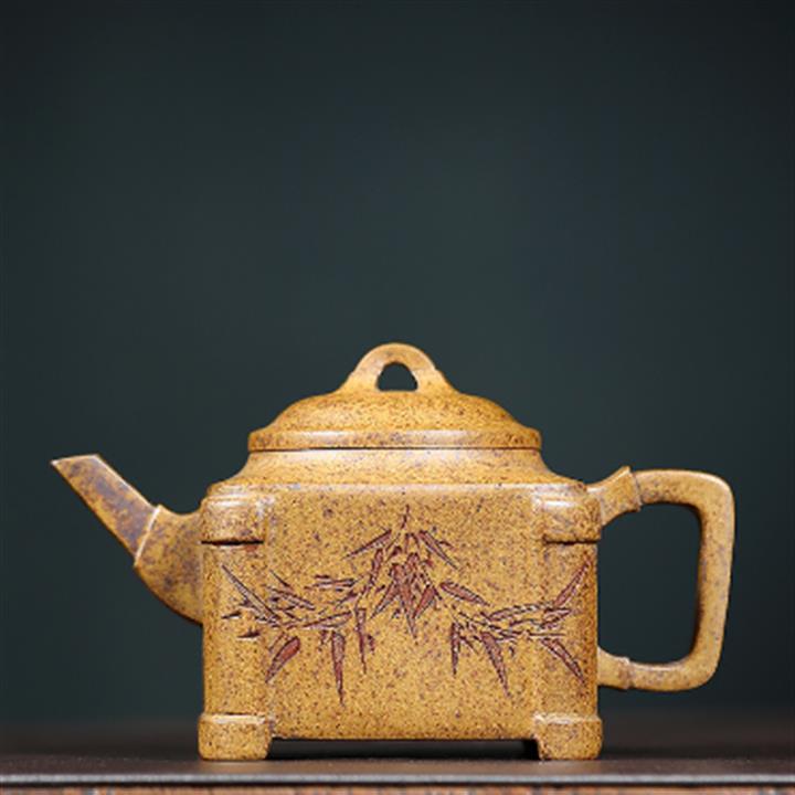 240cc原礦高溫柴燒龍骨金砂四方刻竹茶壺POT9103