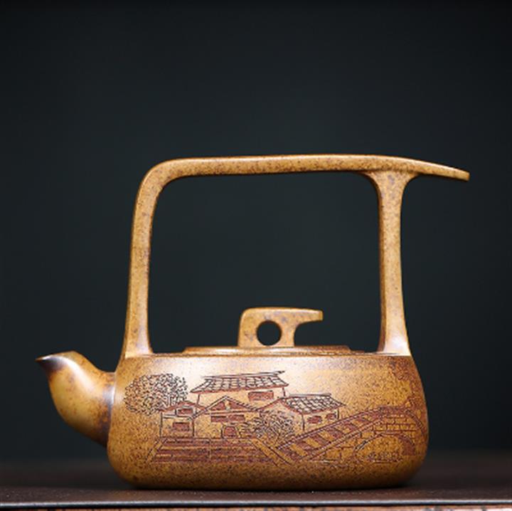 340cc原礦龍骨金砂柴燒壹帆風順提梁壺POT9101