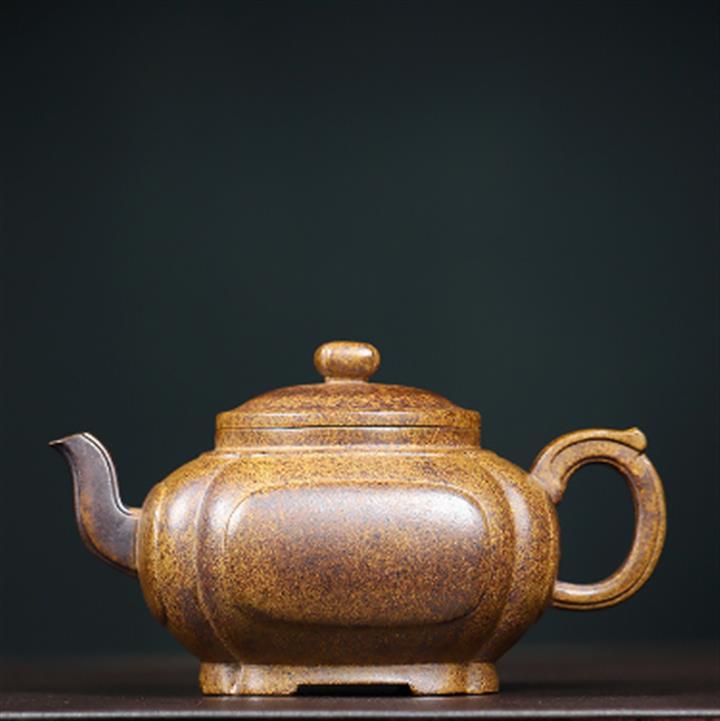 350cc原礦高溫柴燒龍骨金砂四方抽角茶壺POT9104