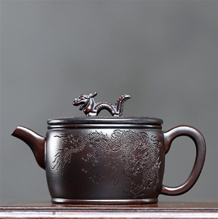 200cc原礦古紅泥遊龍戲鳳漢瓦茶壺POT8676