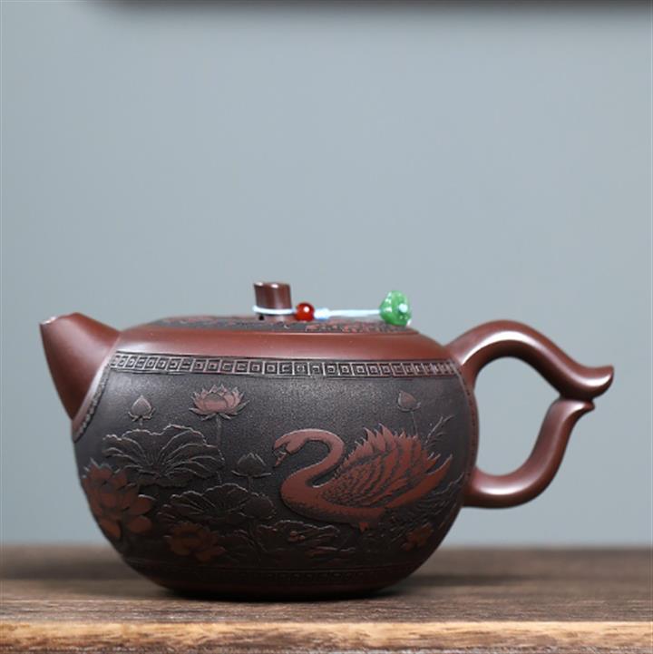 800cc原礦古銅泥滿刻踏雪尋巔茶壺POT8324