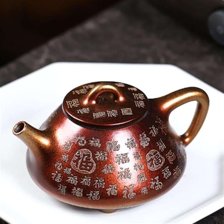 280cc原礦稀有紅皮龍四方如意茶壺POT8710