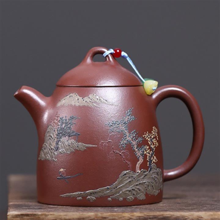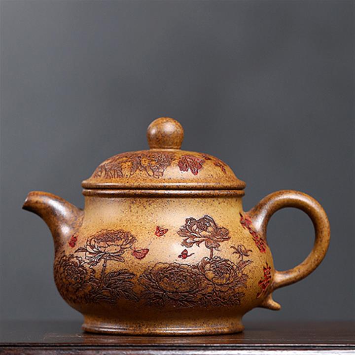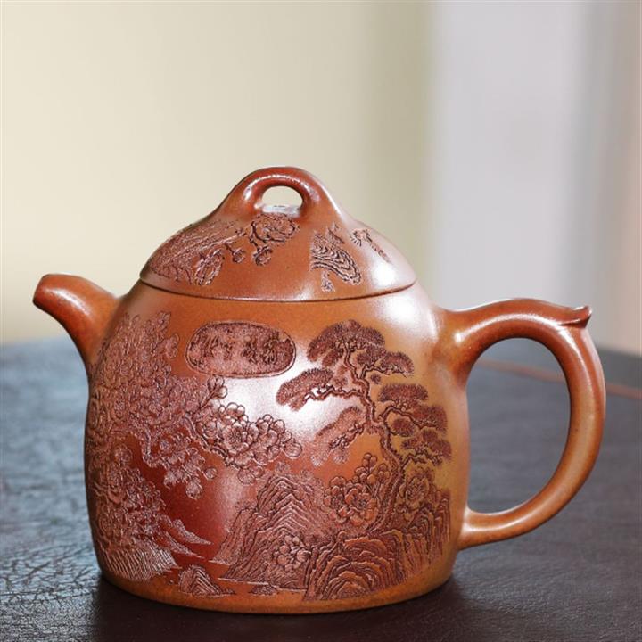 380cc段泥赤焰火雲燒滿刻秦權茶壺POT8202