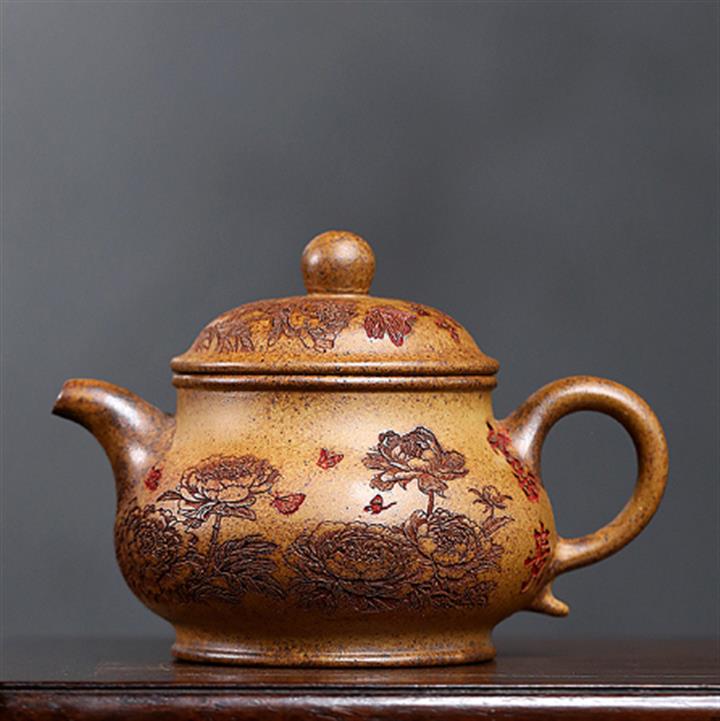 420cc原礦高溫段泥花開富貴潘壺茶壺POT8651