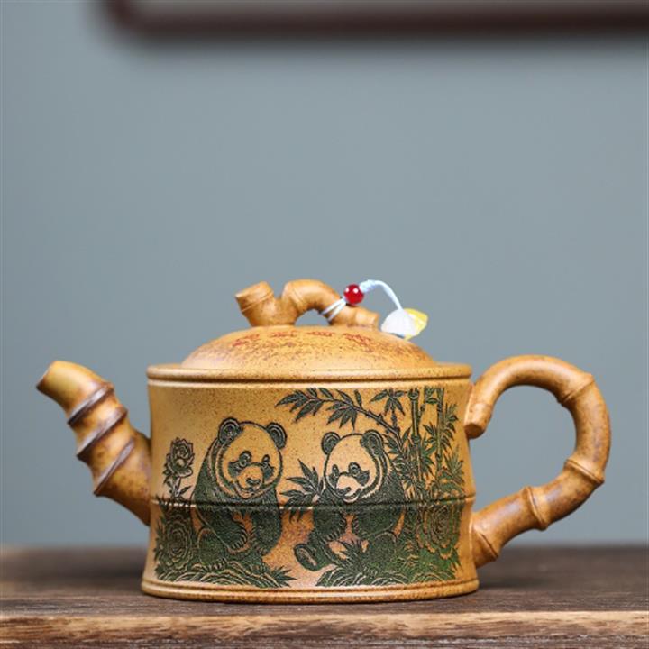 350cc原礦墨綠泥通身刻竹之清雅茶壺POT8302