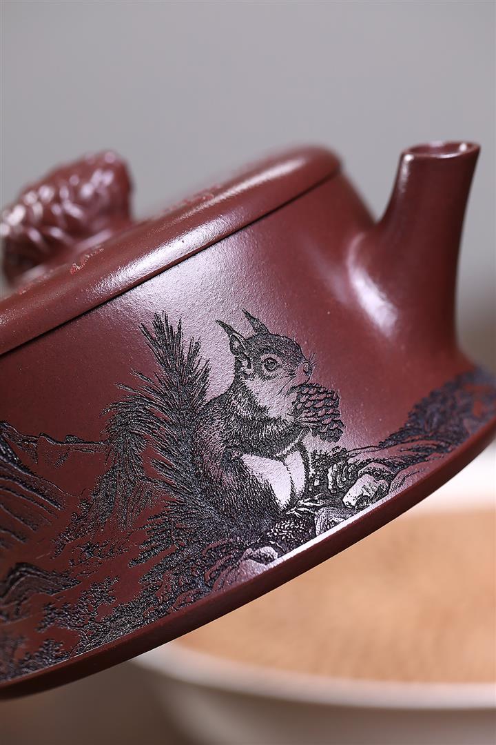 300老紫泥碩果累累松鼠漢瓦茶壺POT8071