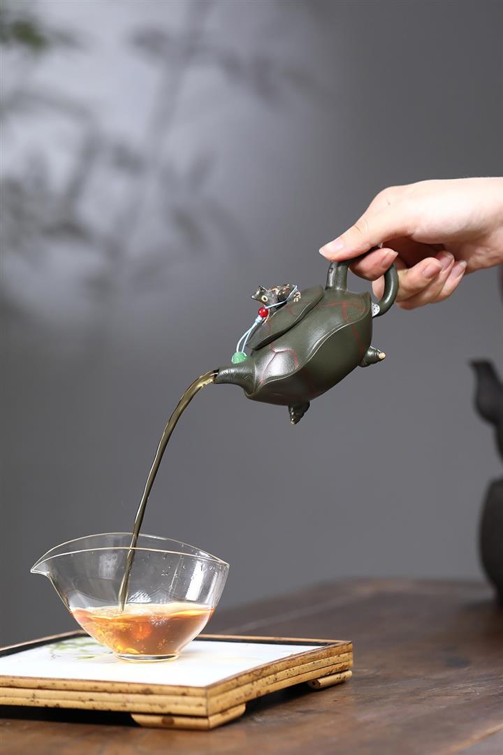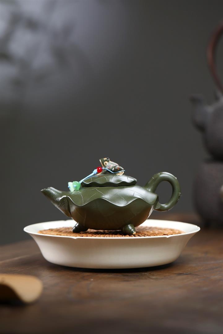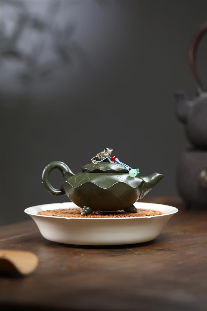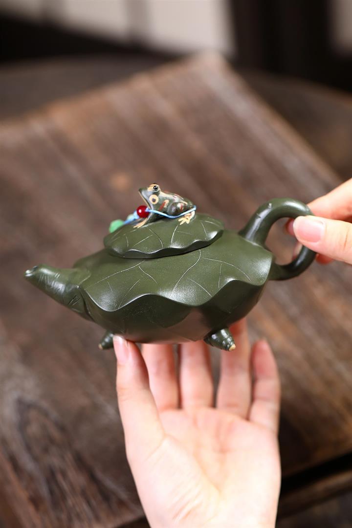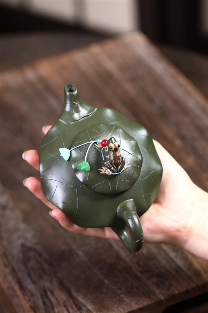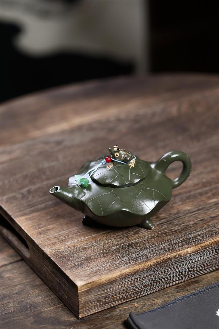 200cc原礦綠泥荷塘聽雨仿生茶壺POT8082