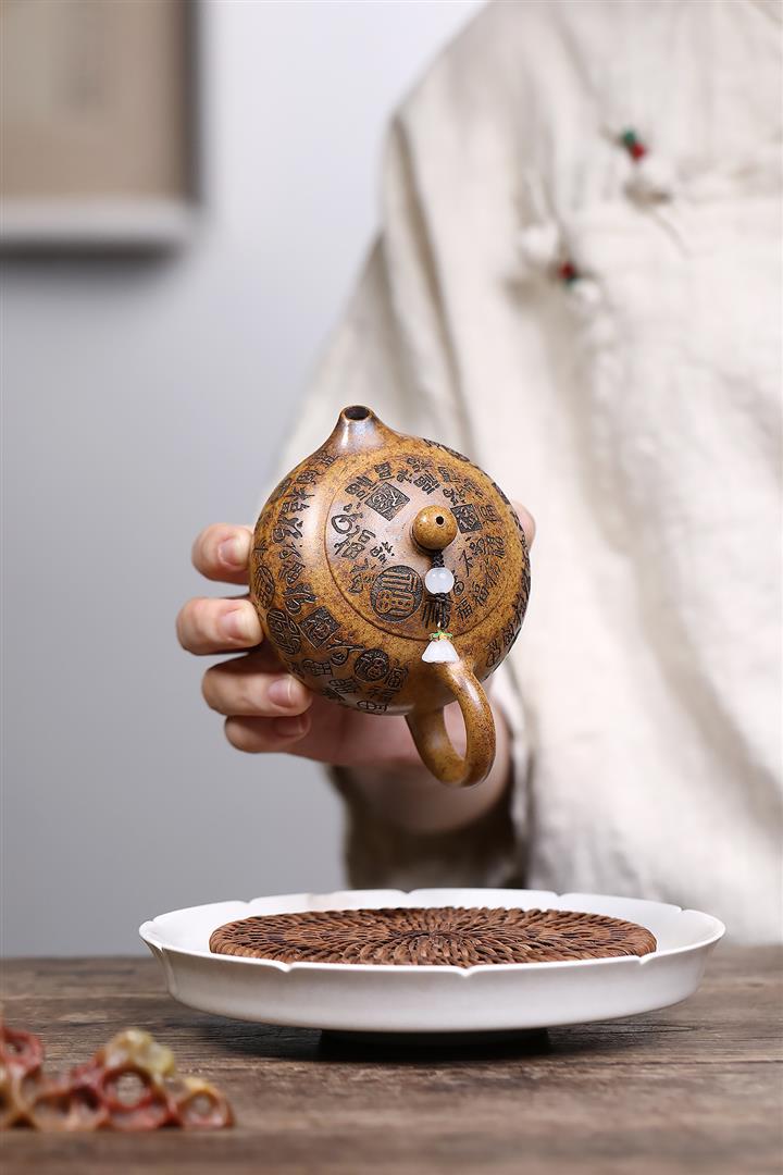 原礦大紅袍錢幣漢瓦紫砂壺POT5474