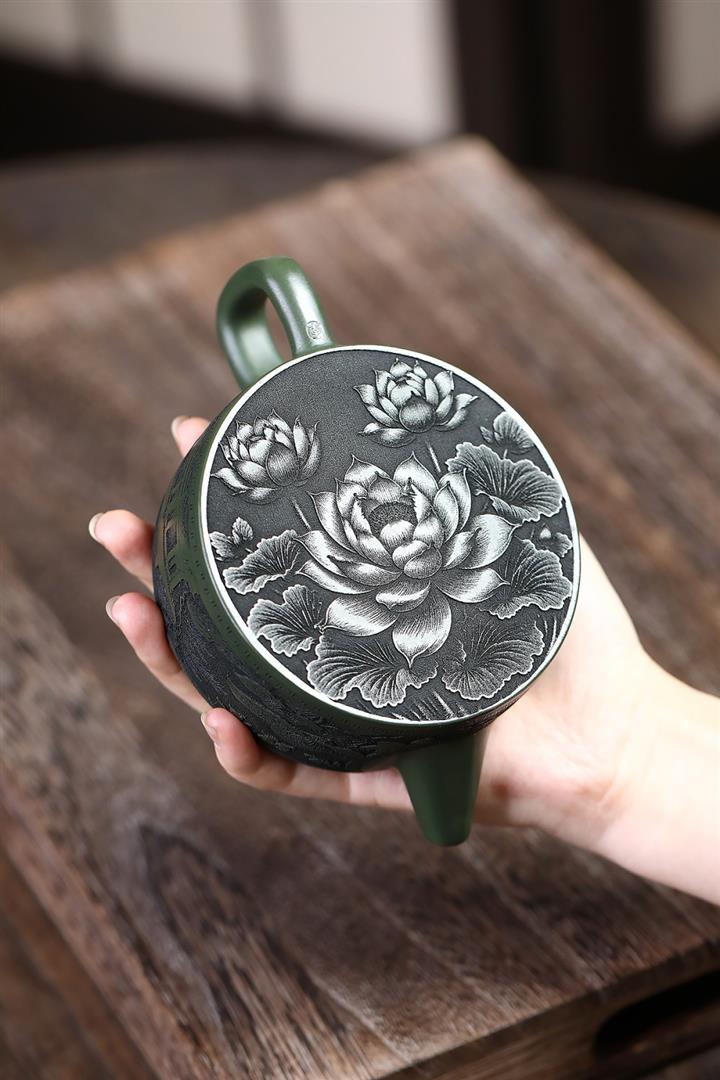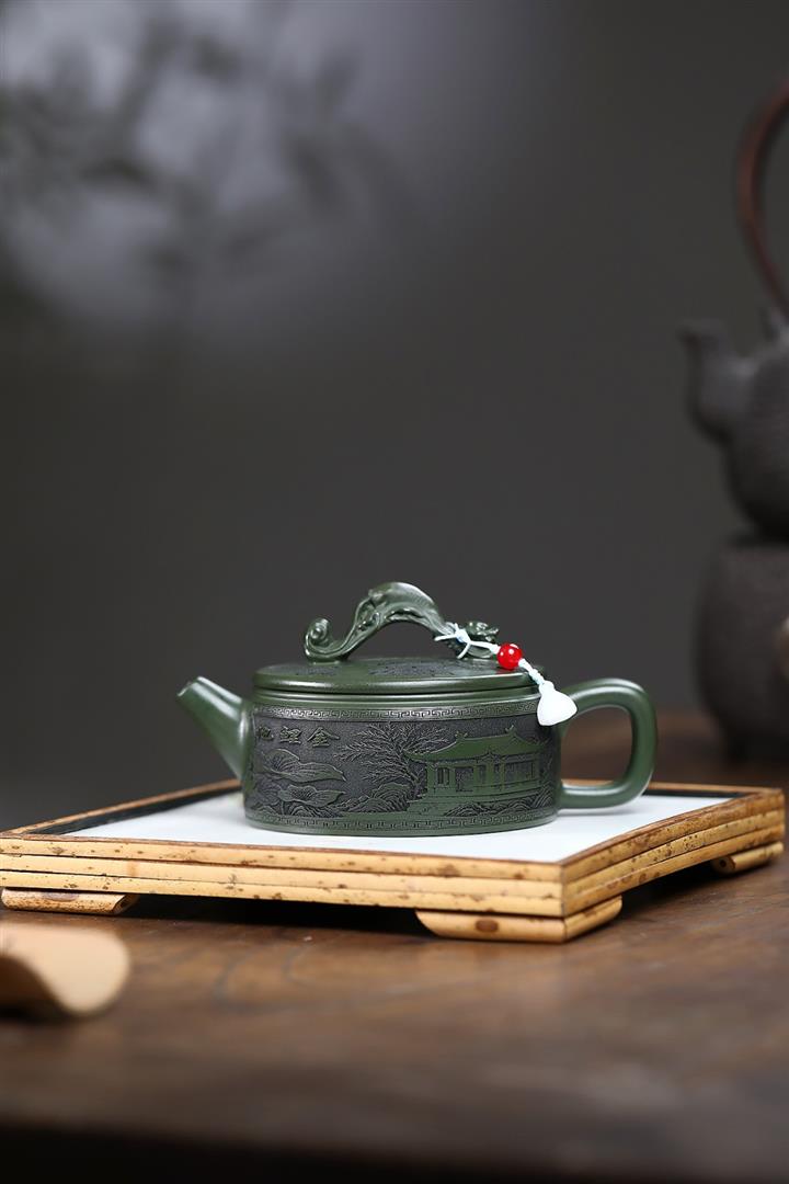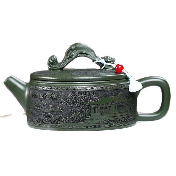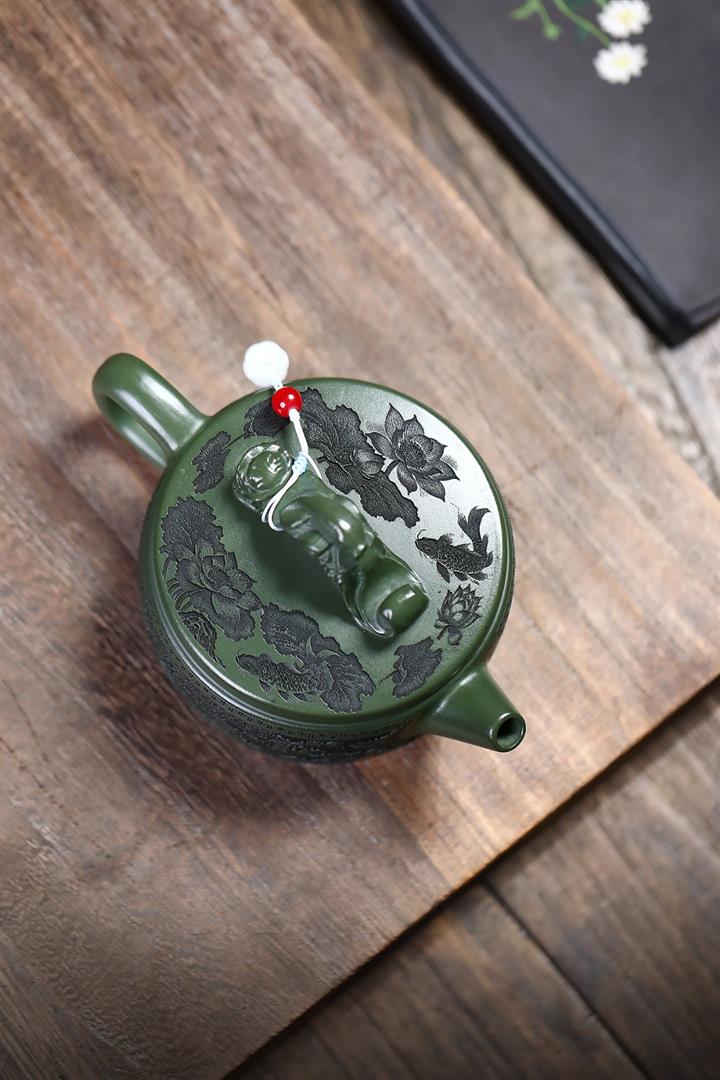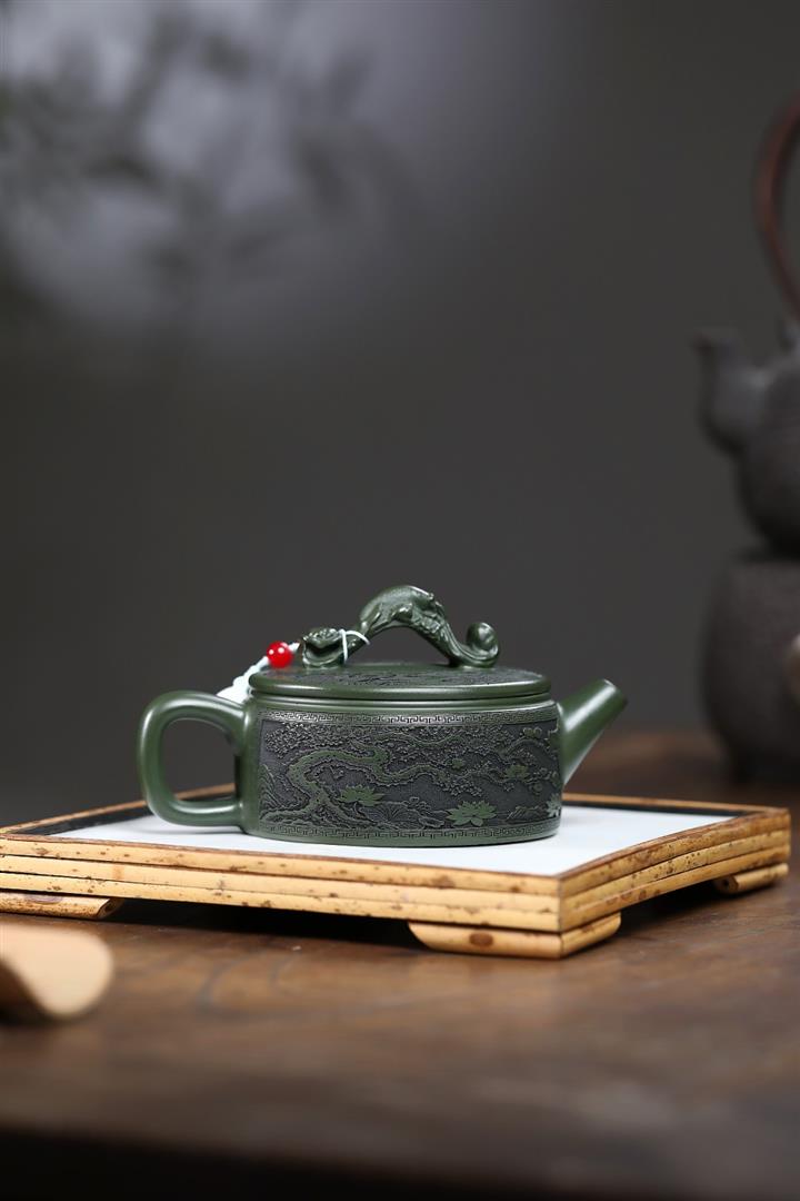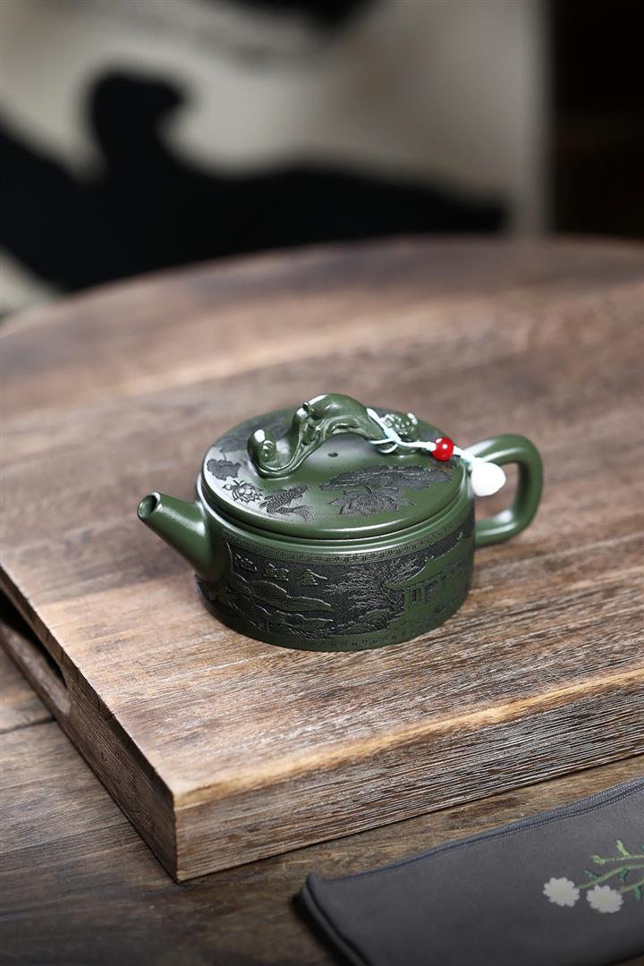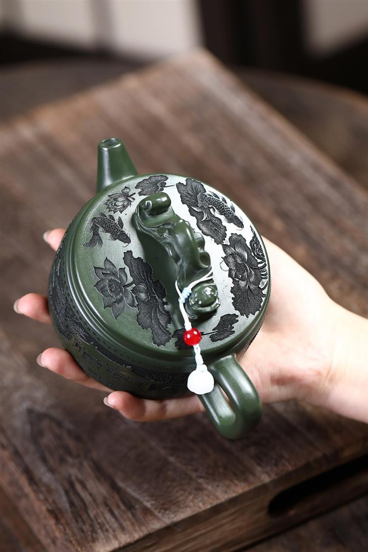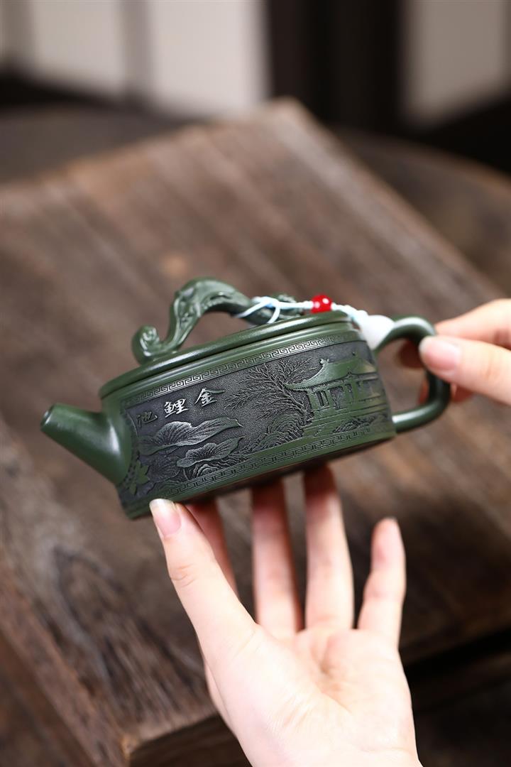280cc原礦綠泥金池躍鯉漢瓦壺POT8087