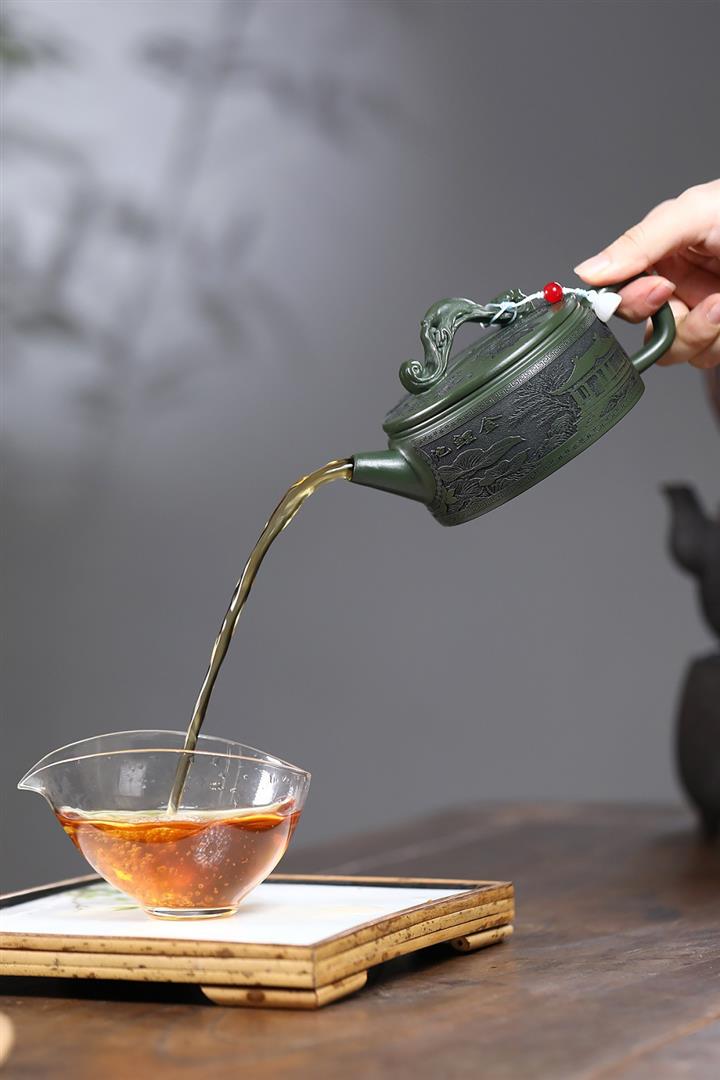 【泥料特點】砂土氣重,似淳實農民,日久使用,漸露鋒芒,養成變化,溫潤莊重。紫砂是壹種雙重氣孔結構的多孔性材質,氣孔微細,密度高。用紫砂壺沏茶,不失原味,且香不渙散,得茶之真香真味。紫砂使用越久,壺身色澤越發光亮照人,氣韻溫雅。紫砂壺長久使用器身會因撫摸擦拭,變得越發溫潤光澤。