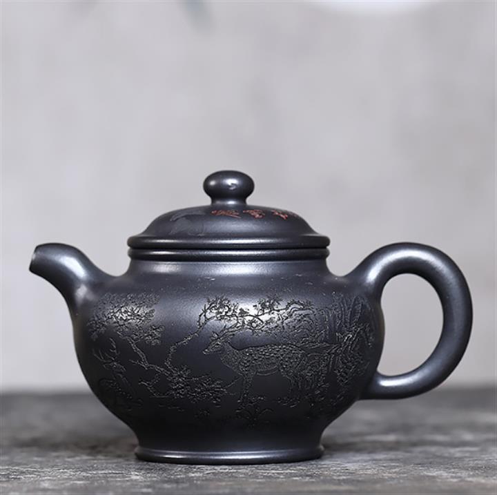 330cc原礦玄鐵石黃鹿鳴松鶴掇只茶壺POT9190