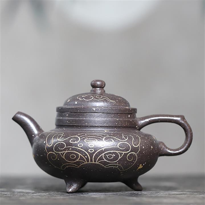 280cc原礦古烏泥刻繪般若禪韻飛把茶壺POT9197