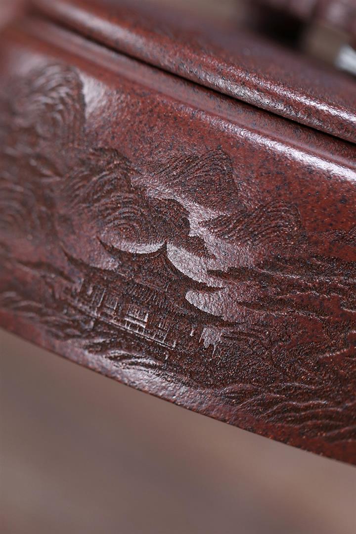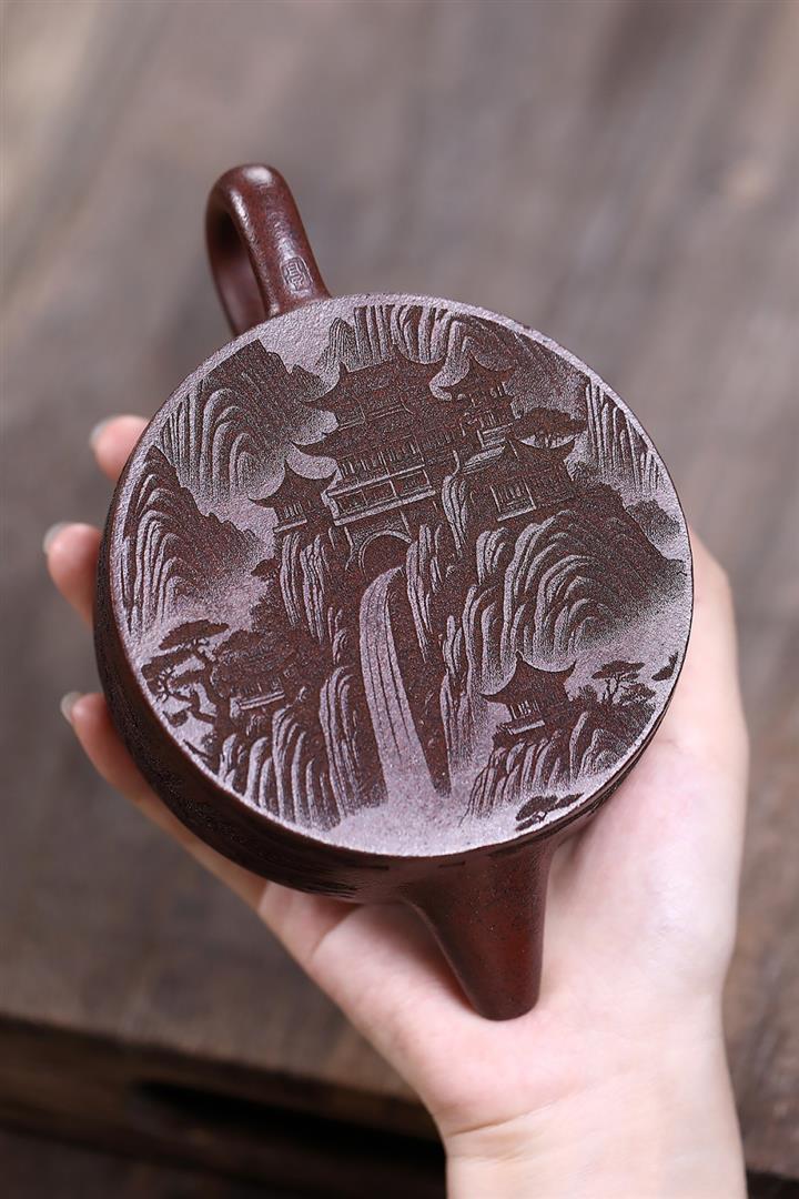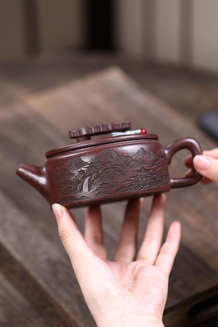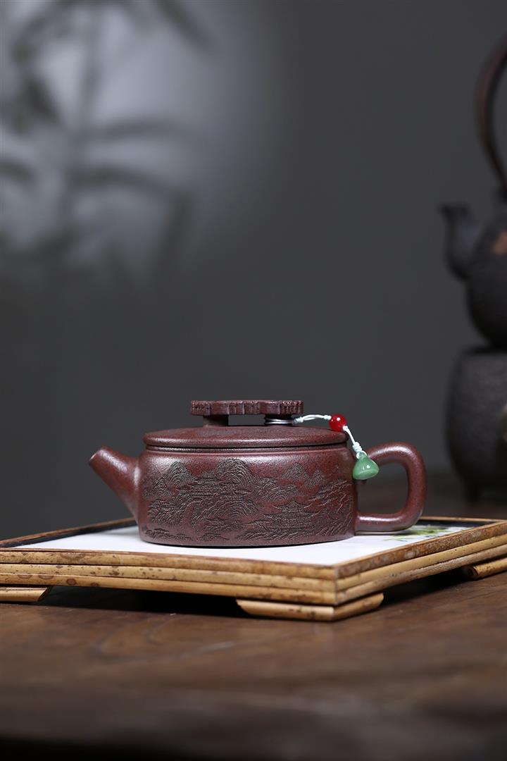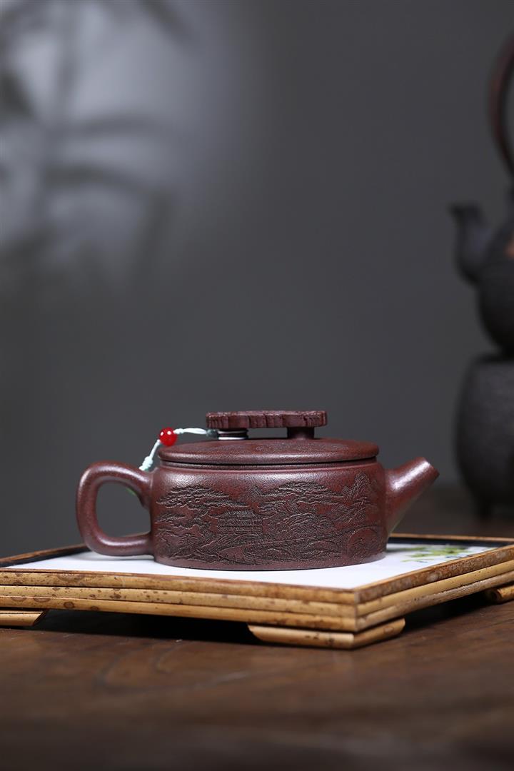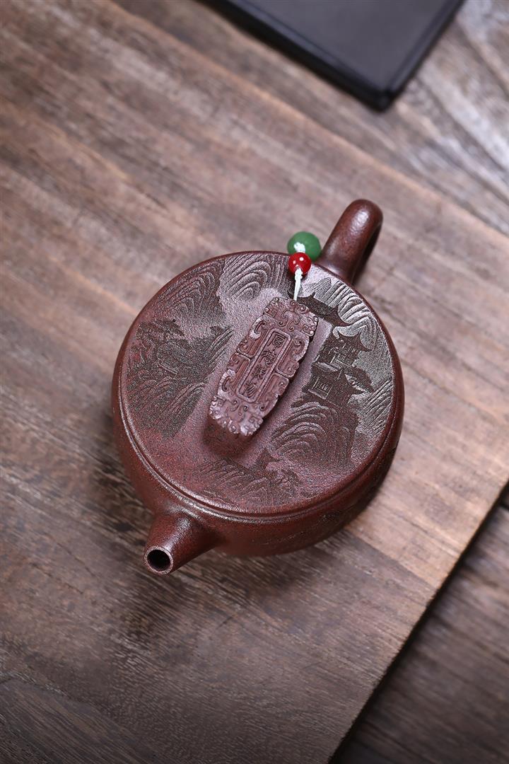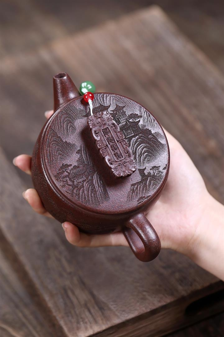 320cc原礦紅皮龍刻繪山水秦權泡茶壺POT8411