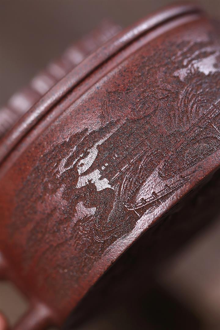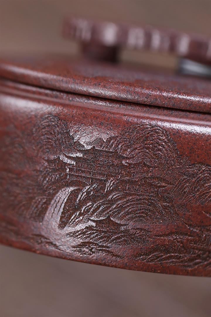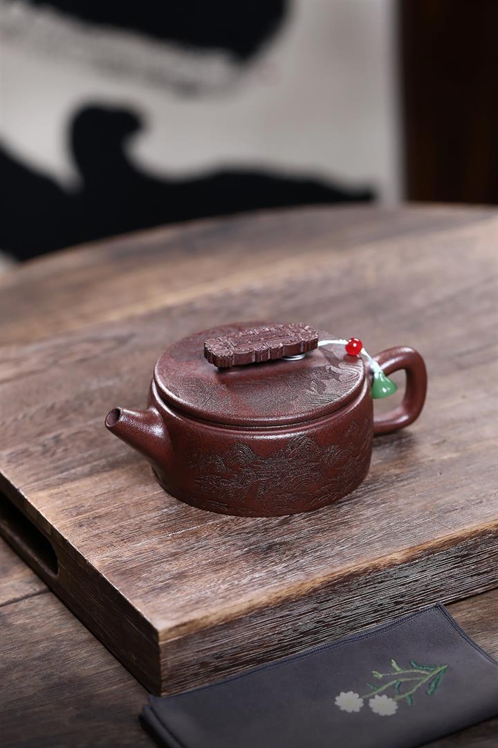 280cc原礦石紅泥滿刻松趣丹霞漢瓦茶壺POT8403