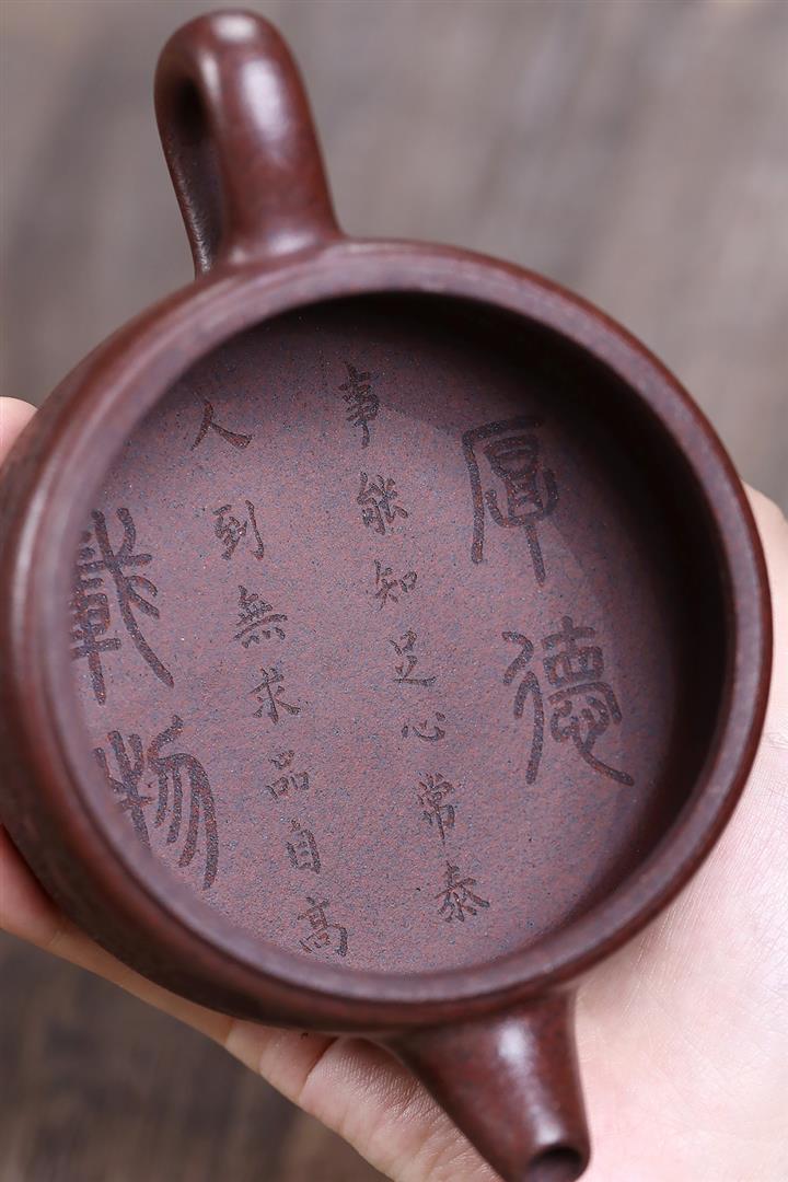 【泥料特點】砂土氣重,似淳實農民,日久使用,漸露鋒芒,養成變化,溫潤莊重。紫砂是壹種雙重氣孔結構的多孔性材質,氣孔微細,密度高。用紫砂壺沏茶,不失原味,且香不渙散,得茶之真香真味。紫砂使用越久,壺身色澤越發光亮照人,氣韻溫雅。紫砂壺長久使用器身會因撫摸擦拭,變得越發溫潤光澤。