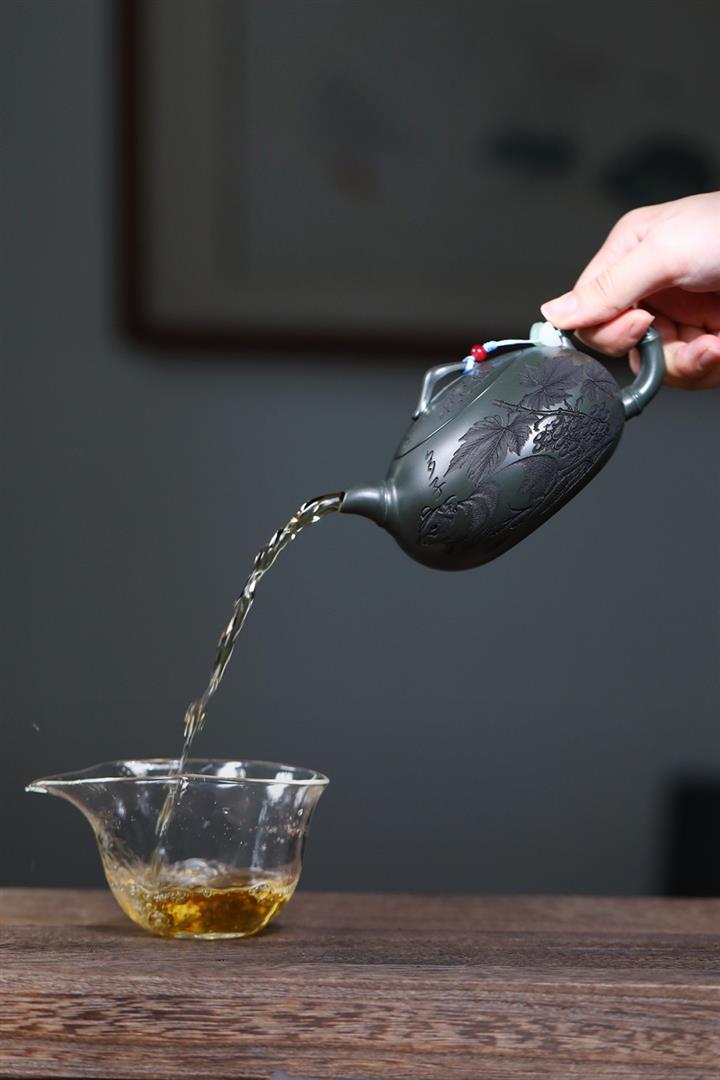【泥料特點】砂土氣重,似淳實農民,日久使用,漸露鋒芒,養成變化,溫潤莊重。紫砂是壹種雙重氣孔結構的多孔性材質,氣孔微細,密度高。用紫砂壺沏茶,不失原味,且香不渙散,得茶之真香真味。紫砂使用越久,壺身色澤越發光亮照人,氣韻溫雅。紫砂壺長久使用器身會因撫摸擦拭,變得越發溫潤光澤。