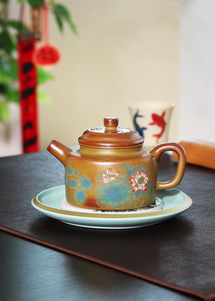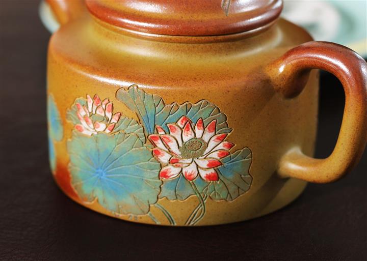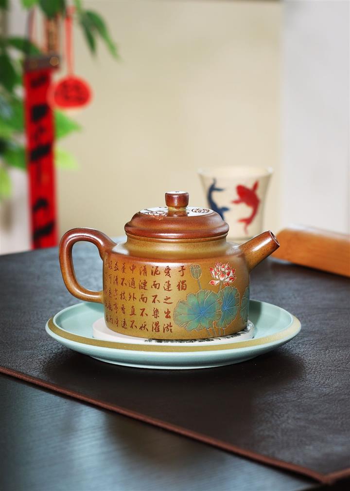原礦百目紫泥手工描金蓮子茶壺POT7069