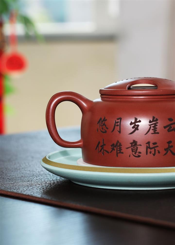 400cc原礦紫泥刻繪山水仿古茶壺POT8616