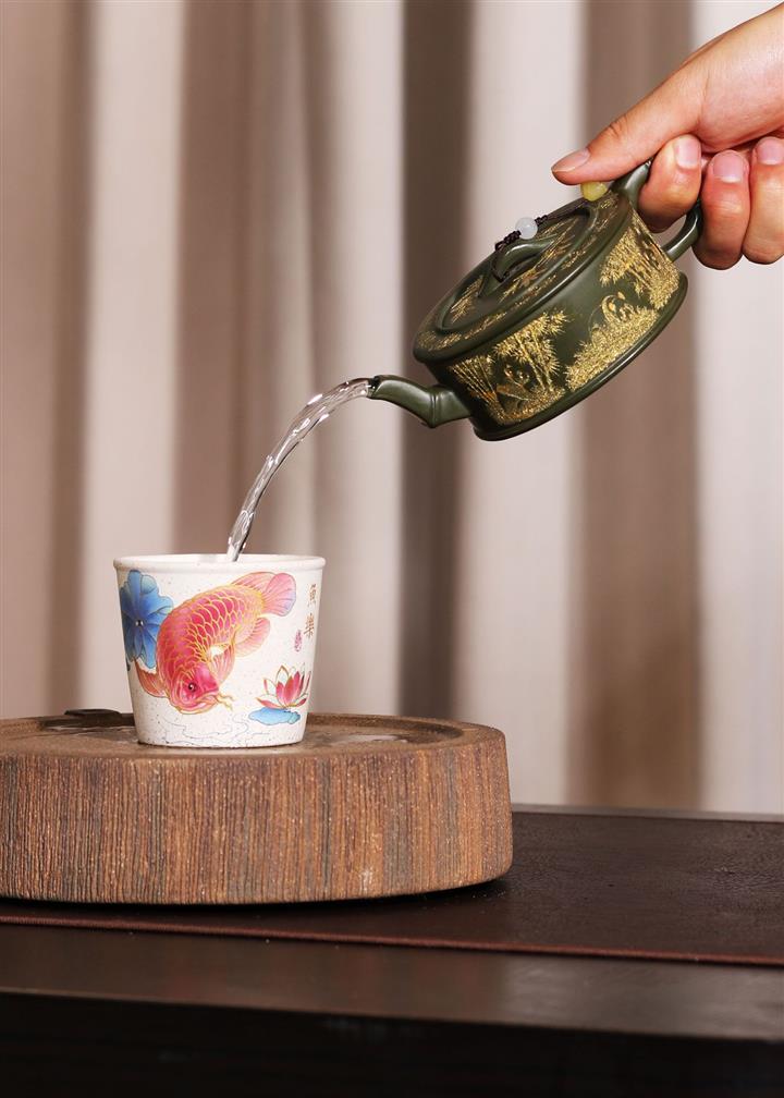 【泥料特點】砂土氣重,似淳實農民,日久使用,漸露鋒芒,養成變化,溫潤莊重。紫砂是壹種雙重氣孔結構的多孔性材質,氣孔微細,密度高。用紫砂壺沏茶,不失原味,且香不渙散,得茶之真香真味。紫砂使用越久,壺身色澤越發光亮照人,氣韻溫雅。紫砂壺長久使用器身會因撫摸擦拭,變得越發溫潤光澤。