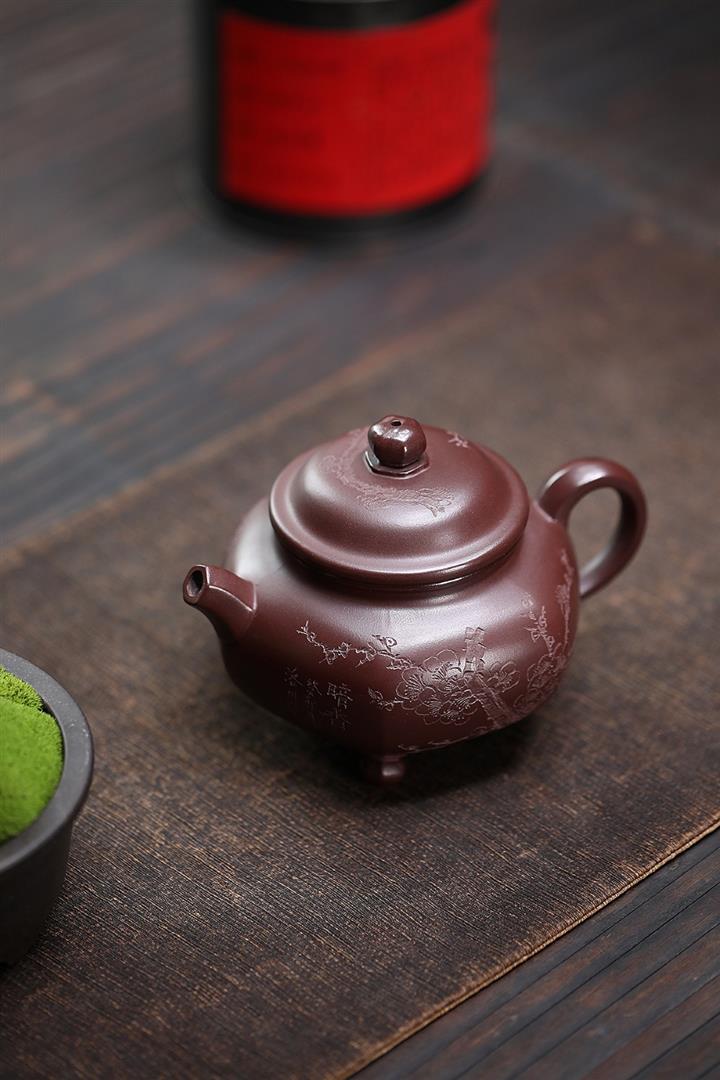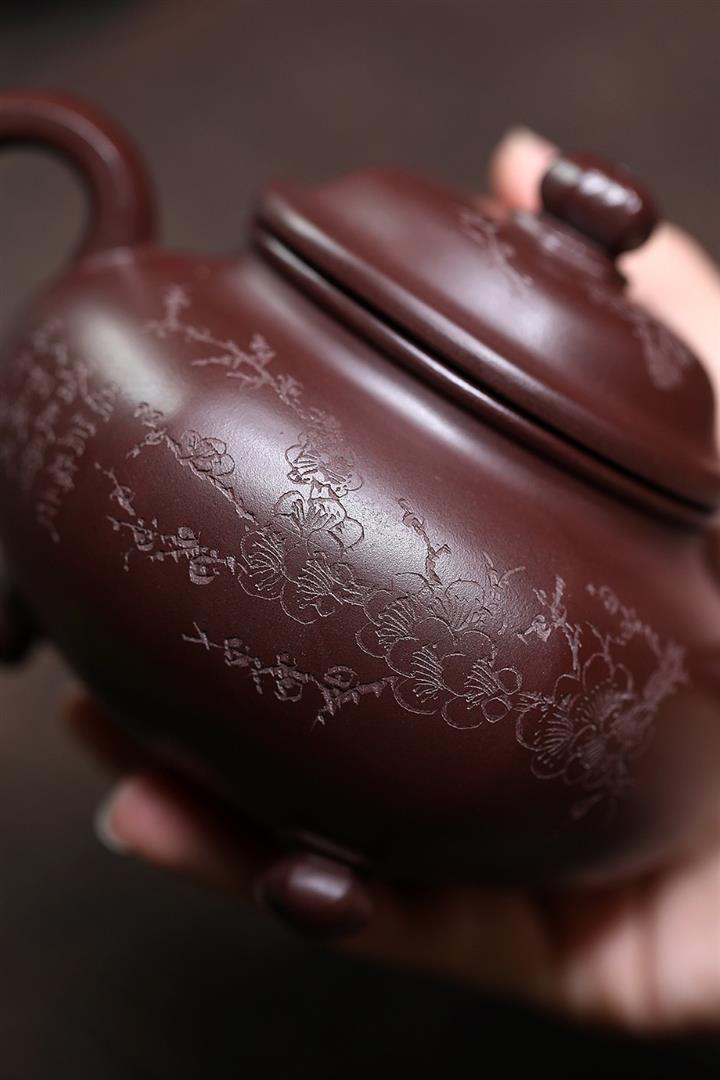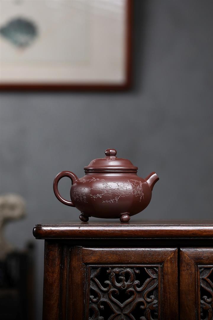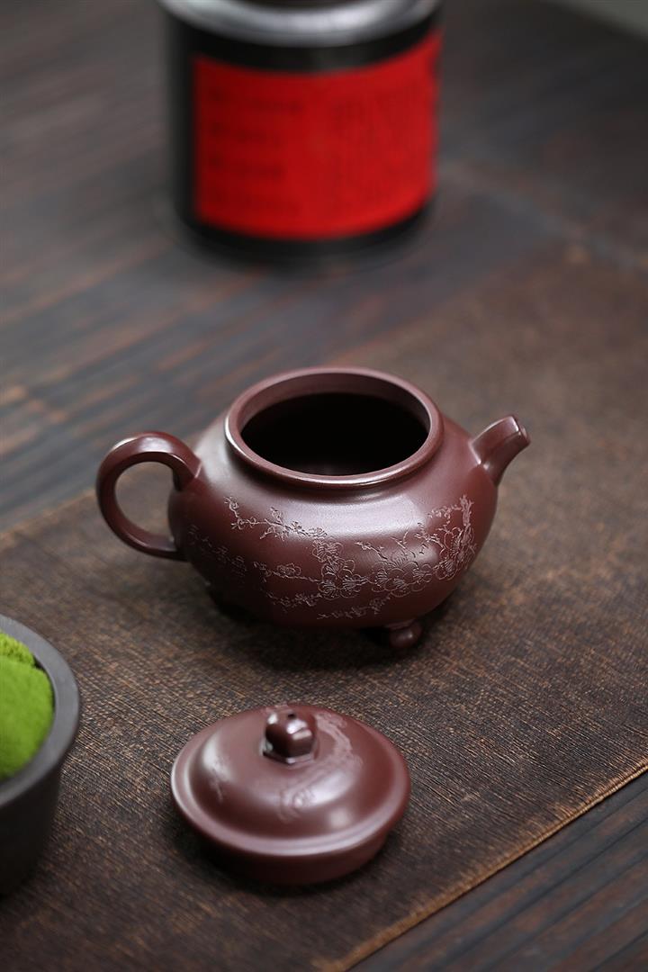 300cc原礦紫朱泥三足梅花泡茶壺POT8209