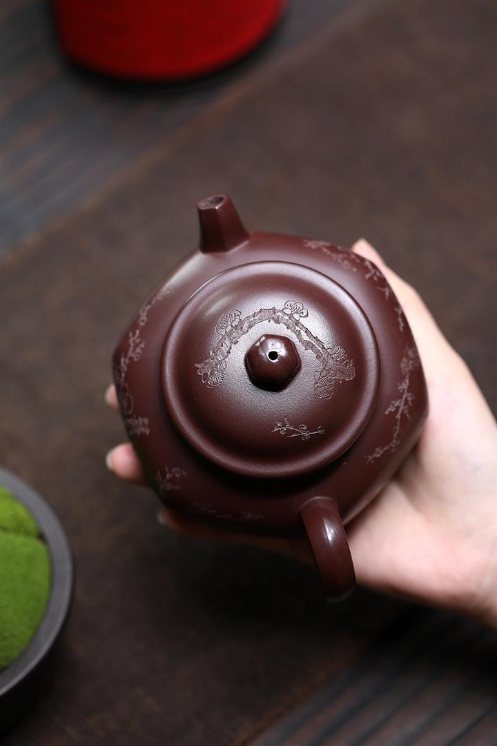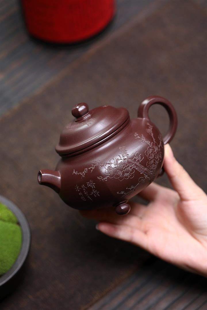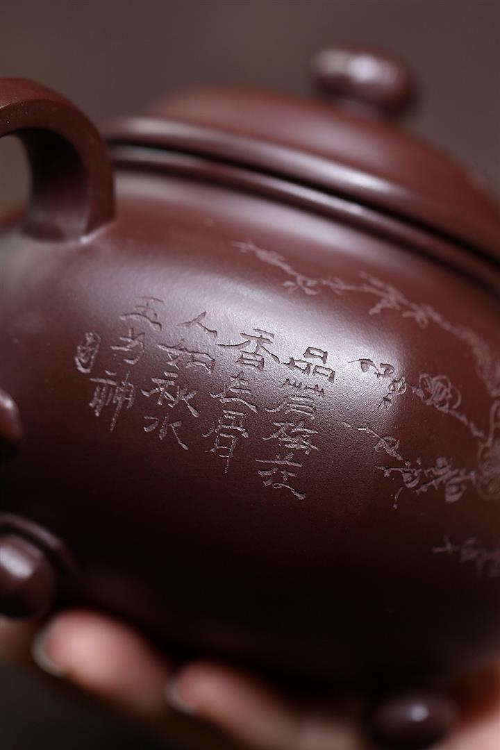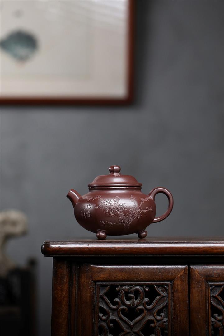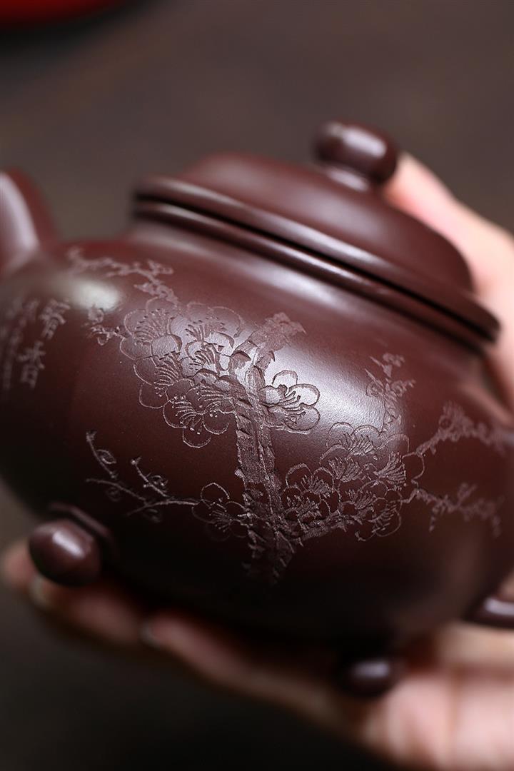 300cc原礦紫朱泥三足梅花泡茶壺POT8209