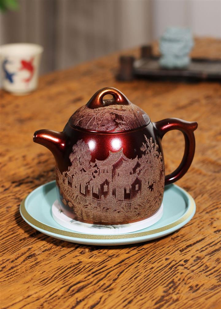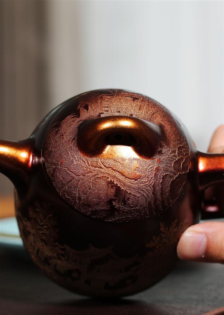 450cc原礦紫泥貝殼燒滿刻秦權茶壺POT8214
