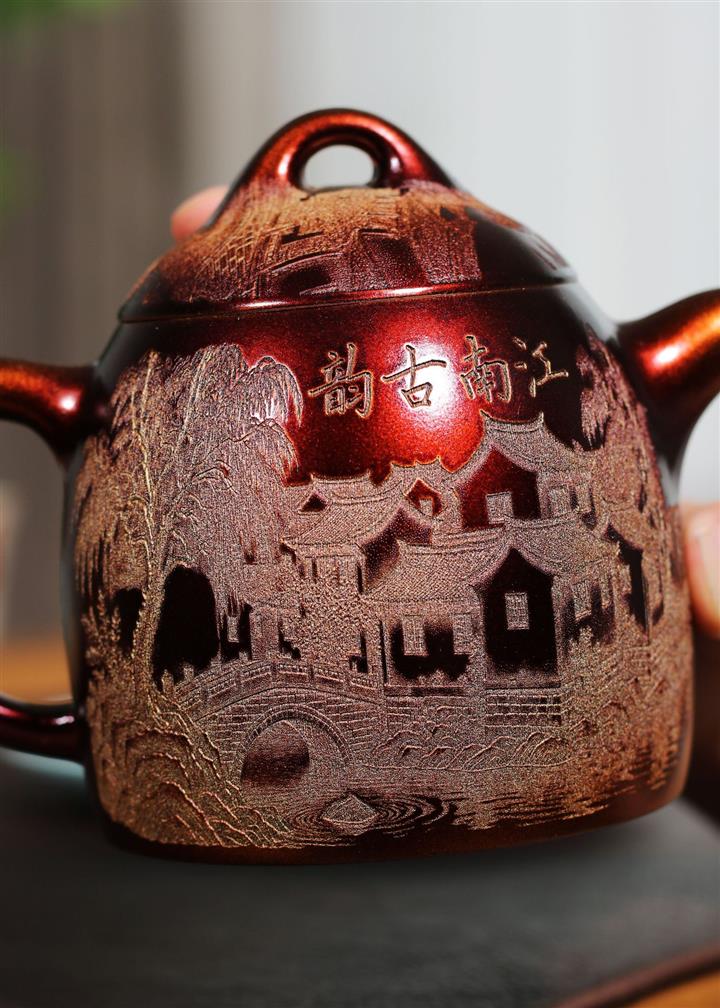 【作品介紹】此款壺形線條流暢,壺把,壺嘴,壺身壹氣呵成栩栩如生,是收藏把玩的好壺,泥料色澤古樸典雅,日久使用,漸露鋒芒,養成變化快,溫潤莊重,用其泡茶,使用的年代久,壺身就溫潤,泡出來的茶湯也就醇郁芳馨。
