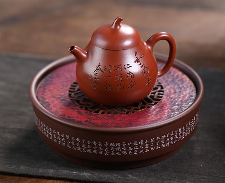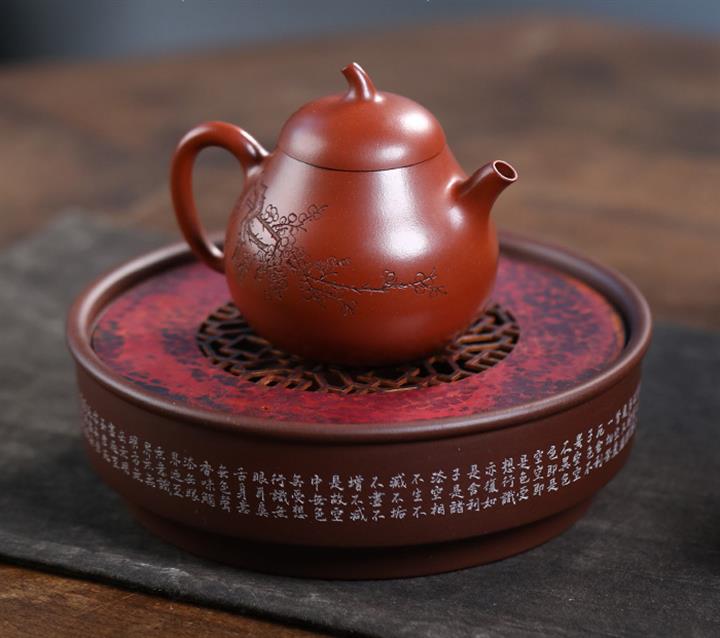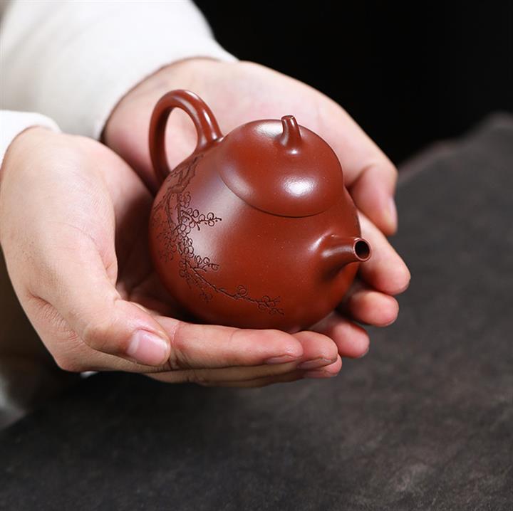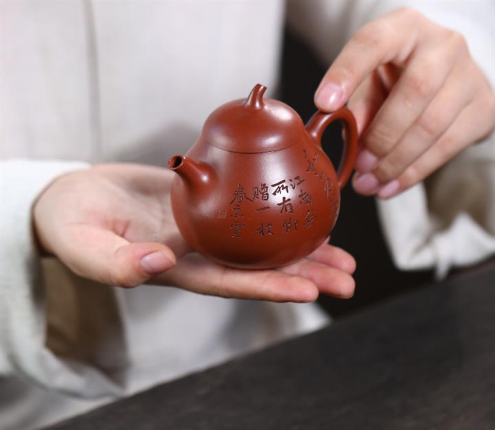 【泥料特點】砂土氣重,似淳實農民,日久使用,漸露鋒芒,養成變化,溫潤莊重。紫砂是壹種雙重氣孔結構的多孔性材質,氣孔微細,密度高。用紫砂壺沏茶,不失原味,且香不渙散,得茶之真香真味。紫砂使用越久,壺身色澤越發光亮照人,氣韻溫雅。紫砂壺長久使用器身會因撫摸擦拭,變得越發溫潤光澤。