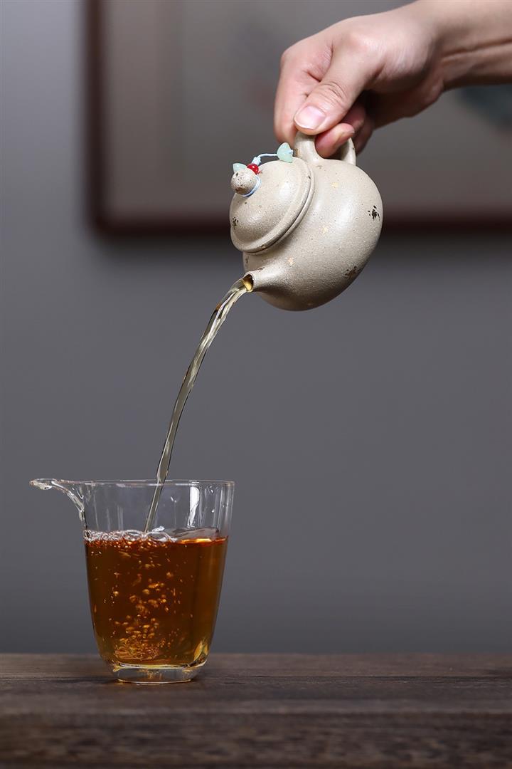 【泥料特點】砂土氣重,似淳實農民,日久使用,漸露鋒芒,養成變化,溫潤莊重。紫砂是壹種雙重氣孔結構的多孔性材質,氣孔微細,密度高。用紫砂壺沏茶,不失原味,且香不渙散,得茶之真香真味。紫砂使用越久,壺身色澤越發光亮照人,氣韻溫雅。紫砂壺長久使用器身會因撫摸擦拭,變得越發溫潤光澤。