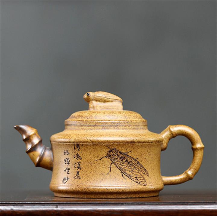 【作品介紹】此款壺形線條流暢,壺把,壺嘴,壺身壹氣呵成栩栩如生,是收藏把玩的好壺,泥料色澤古樸典雅,日久使用,漸露鋒芒,養成變化快,溫潤莊重,用其泡茶,使用的年代久,壺身就溫潤,泡出來的茶湯也就醇郁芳馨。