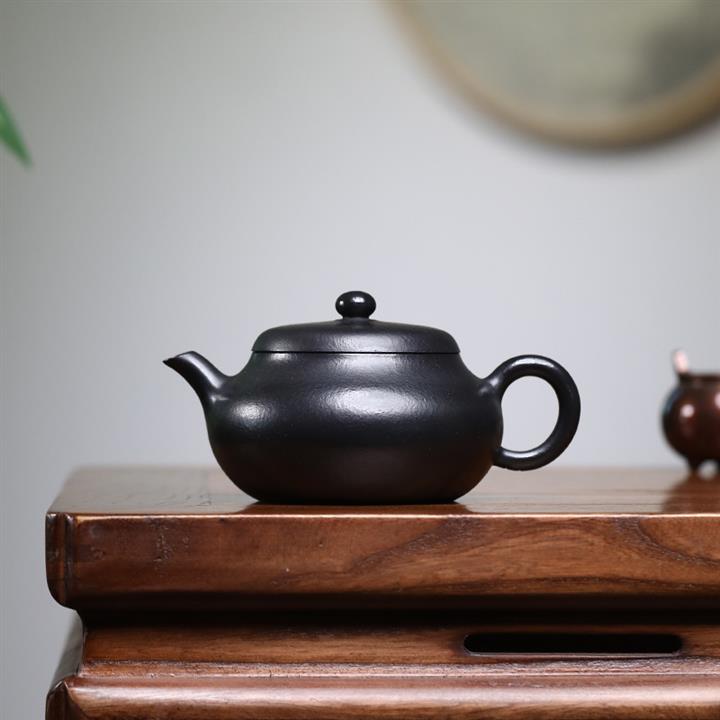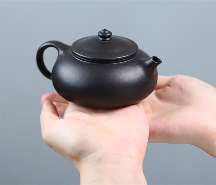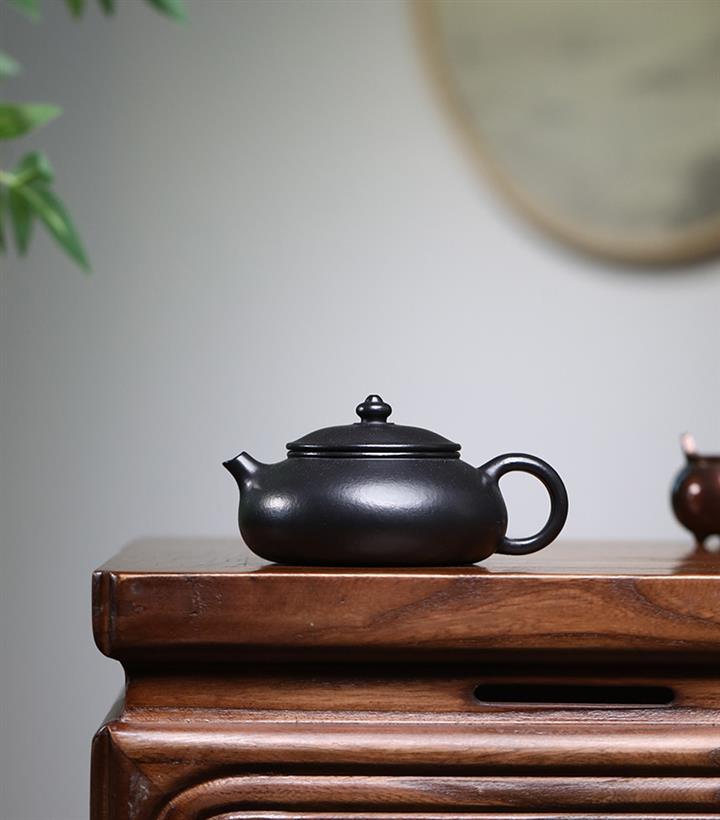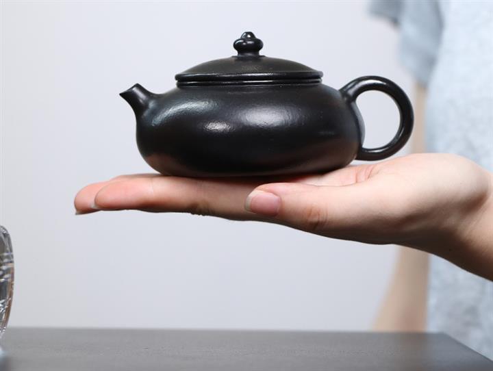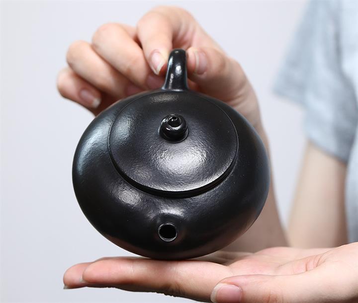 280cc原礦黑料描撒灑金筋紋虛扁茶壺POT8153