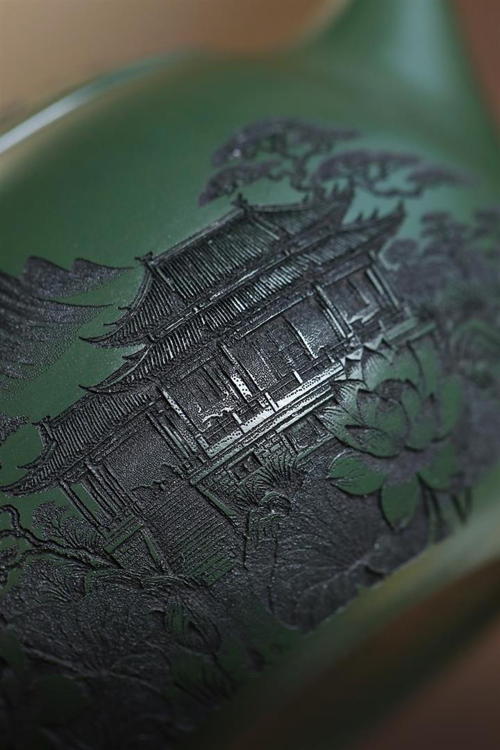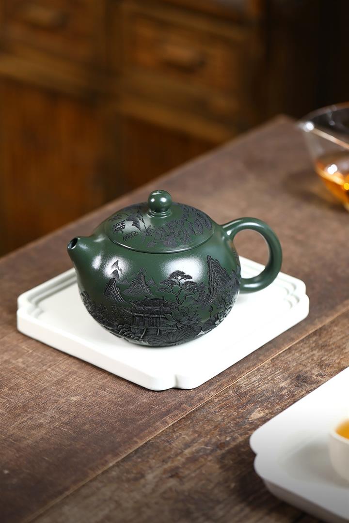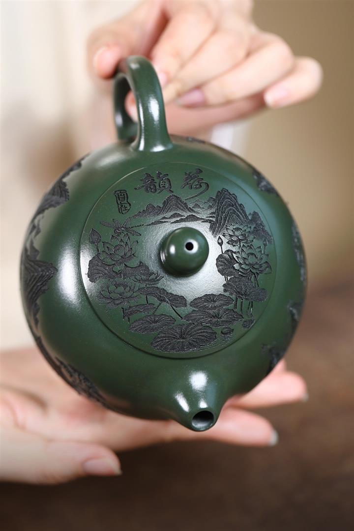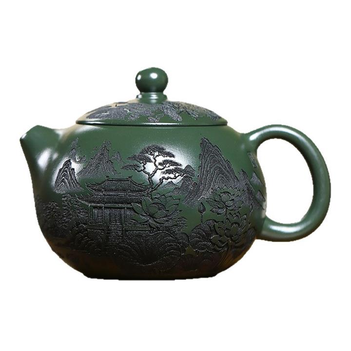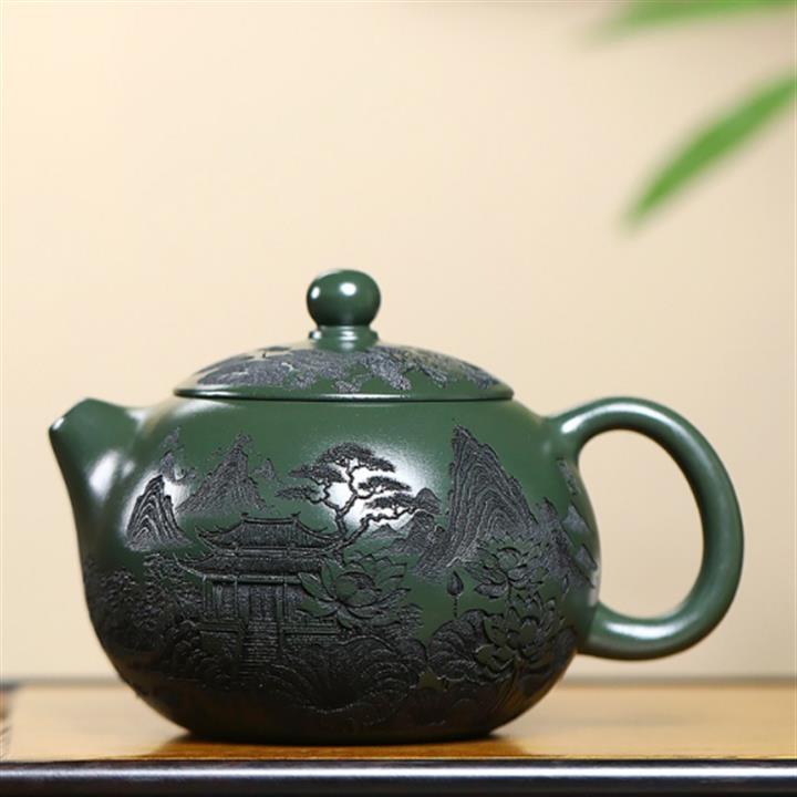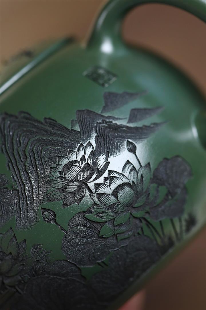 500cc原礦綠泥滿刻荷韻大西施茶壺POT8238