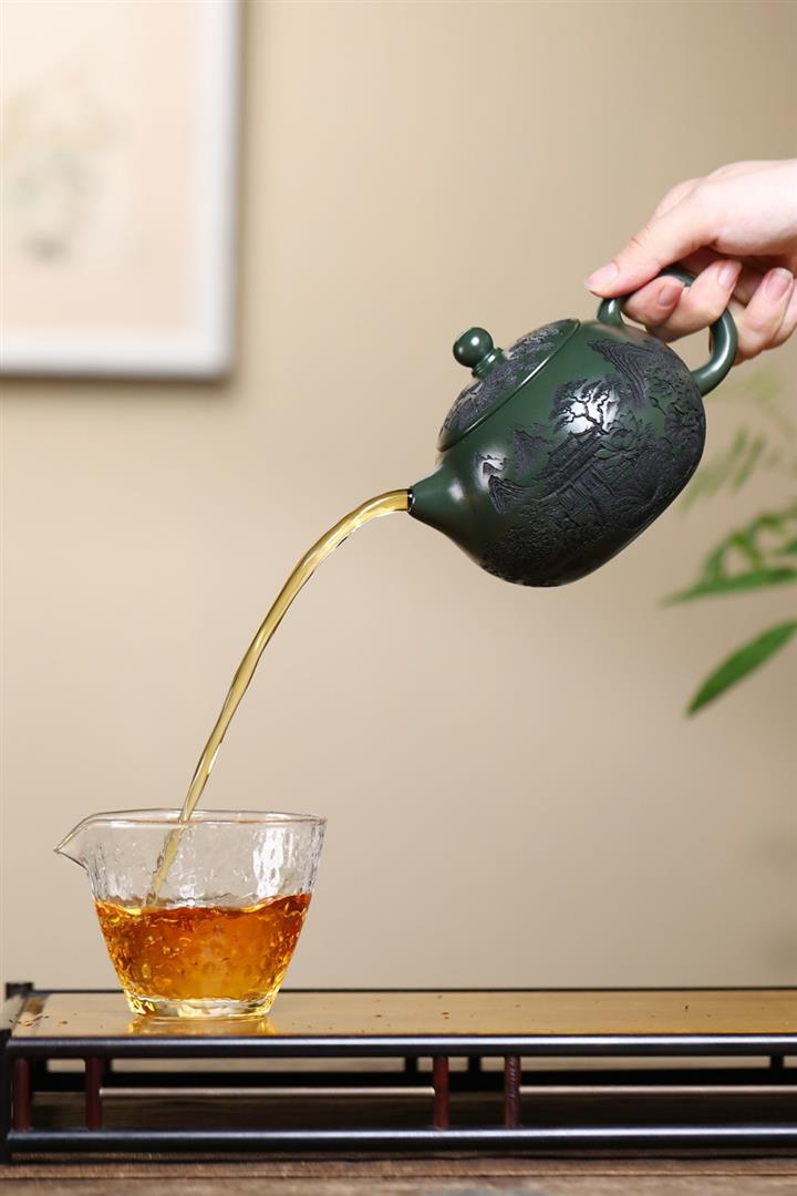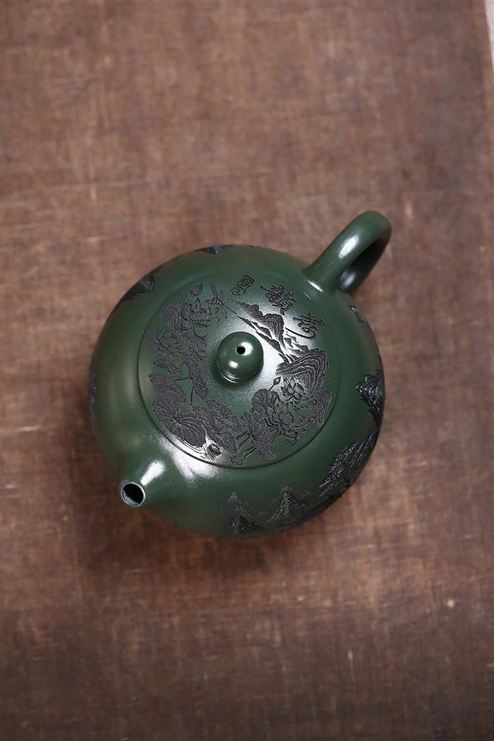140cc九齡君子蘭墨綠泥小石榴茶壺POT8493