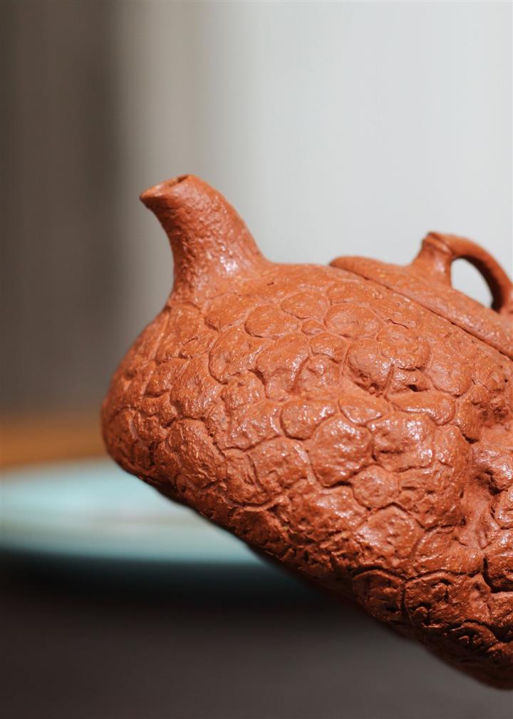 【泥料特點】砂土氣重,似淳實農民,日久使用,漸露鋒芒,養成變化,溫潤莊重。紫砂是壹種雙重氣孔結構的多孔性材質,氣孔微細,密度高。用紫砂壺沏茶,不失原味,且香不渙散,得茶之真香真味。紫砂使用越久,壺身色澤越發光亮照人,氣韻溫雅。紫砂壺長久使用器身會因撫摸擦拭,變得越發溫潤光澤。
