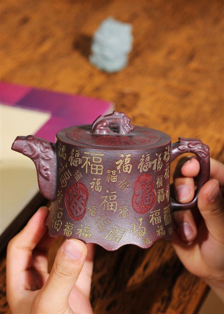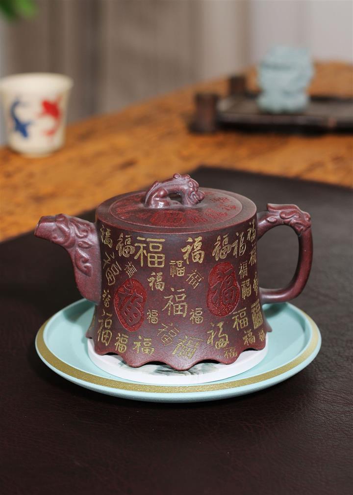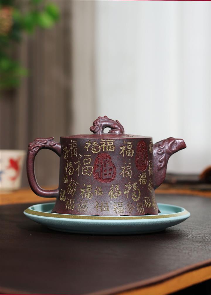 段泥特高溫燒窯變慎獨秦權茶壺POT7307