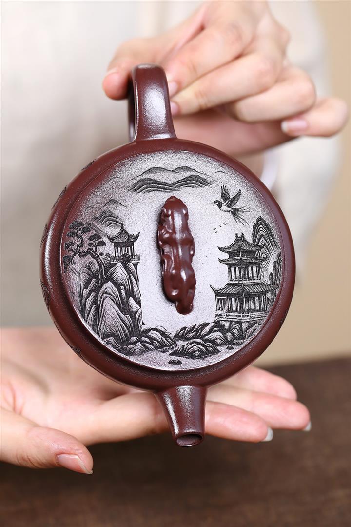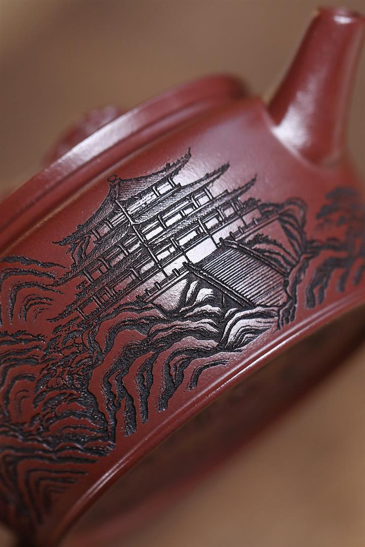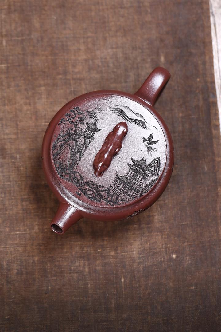 全手工刻繪桂花段泥紫砂壺玉枕壺 Pot3526