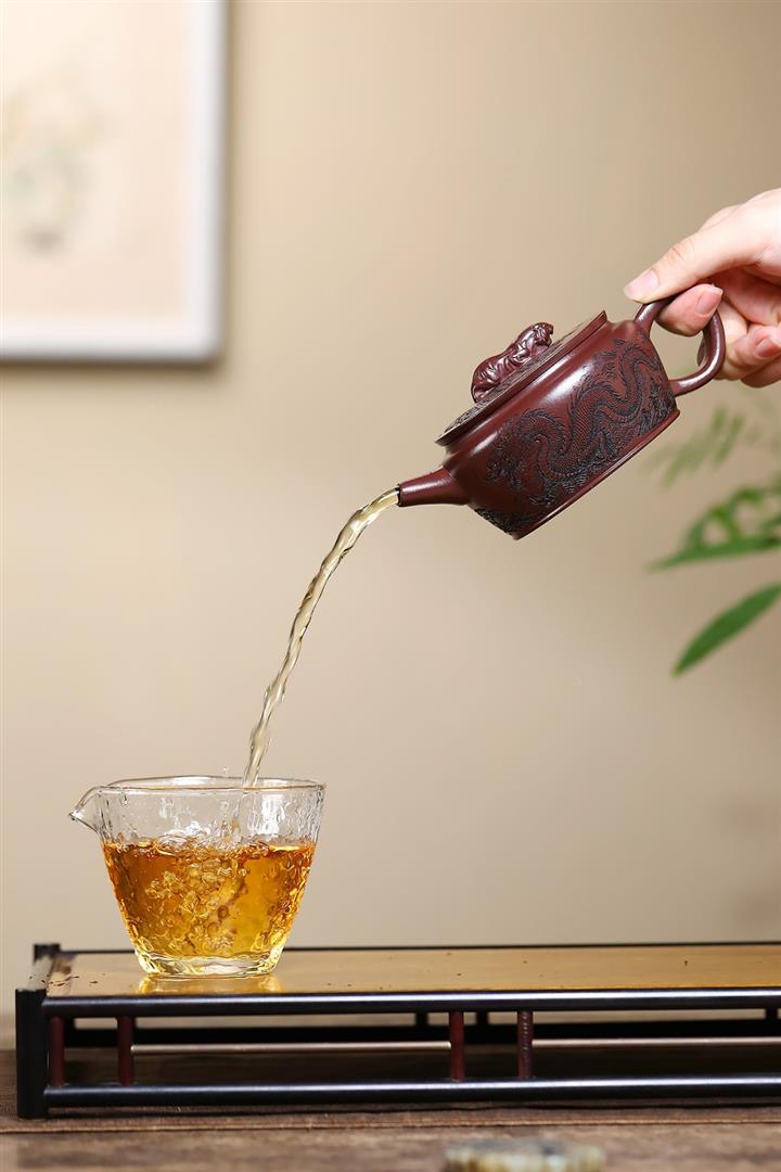 210cc原礦石紅泥虎踞龍盤漢瓦茶壺POT8246