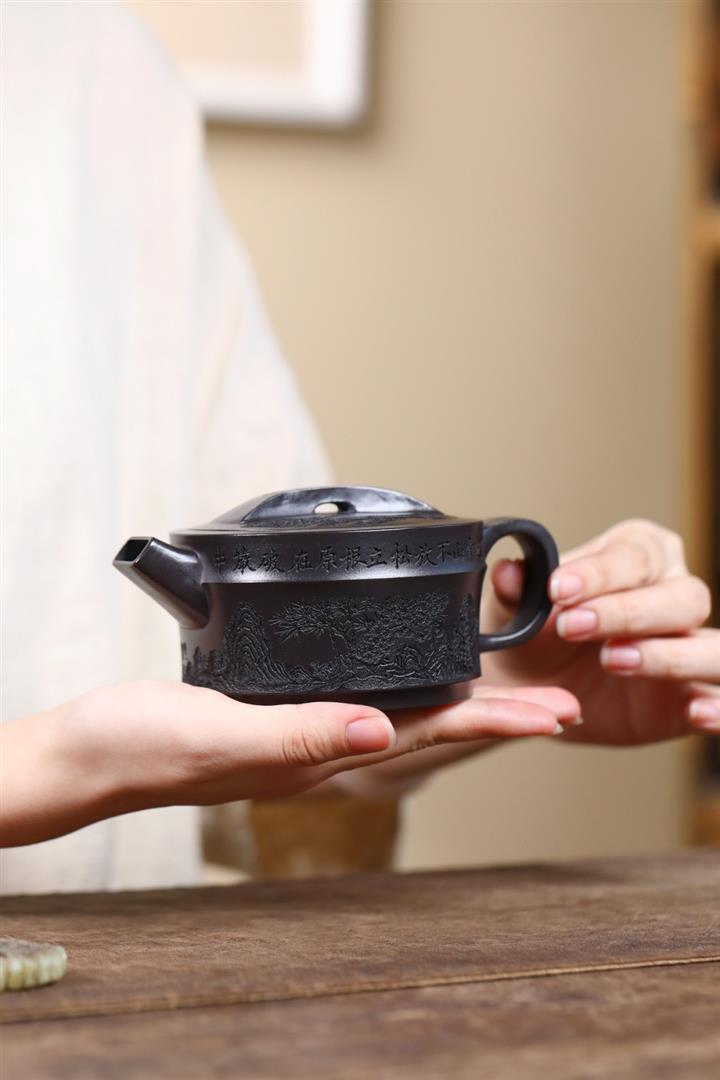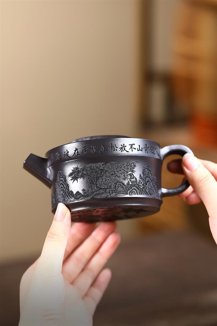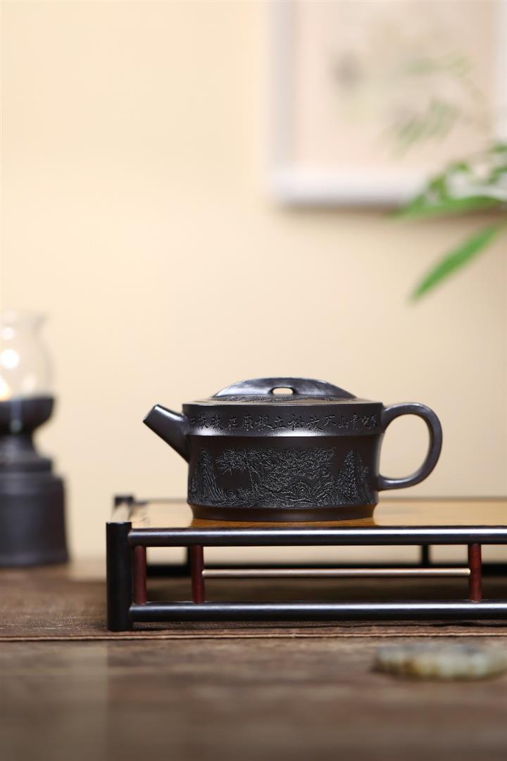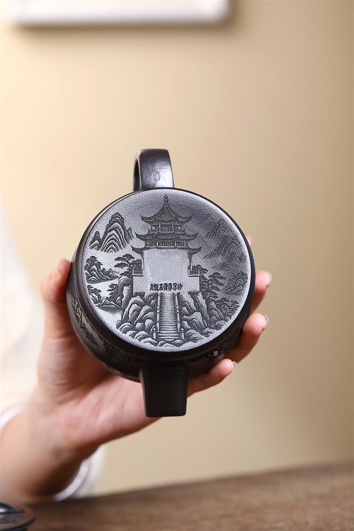 原礦紅降坡彩繪山水三足鼎立茶壺POT7805