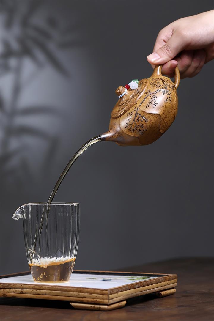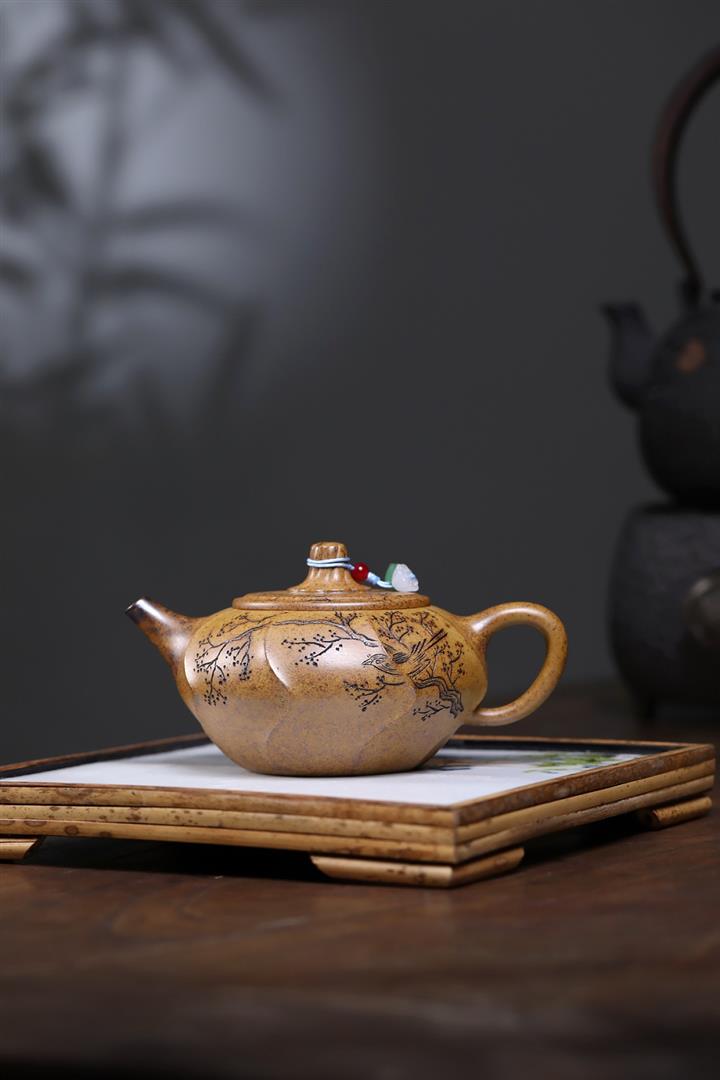 260cc原礦龍骨金砂喜鵲登枝泡茶壺POT8261