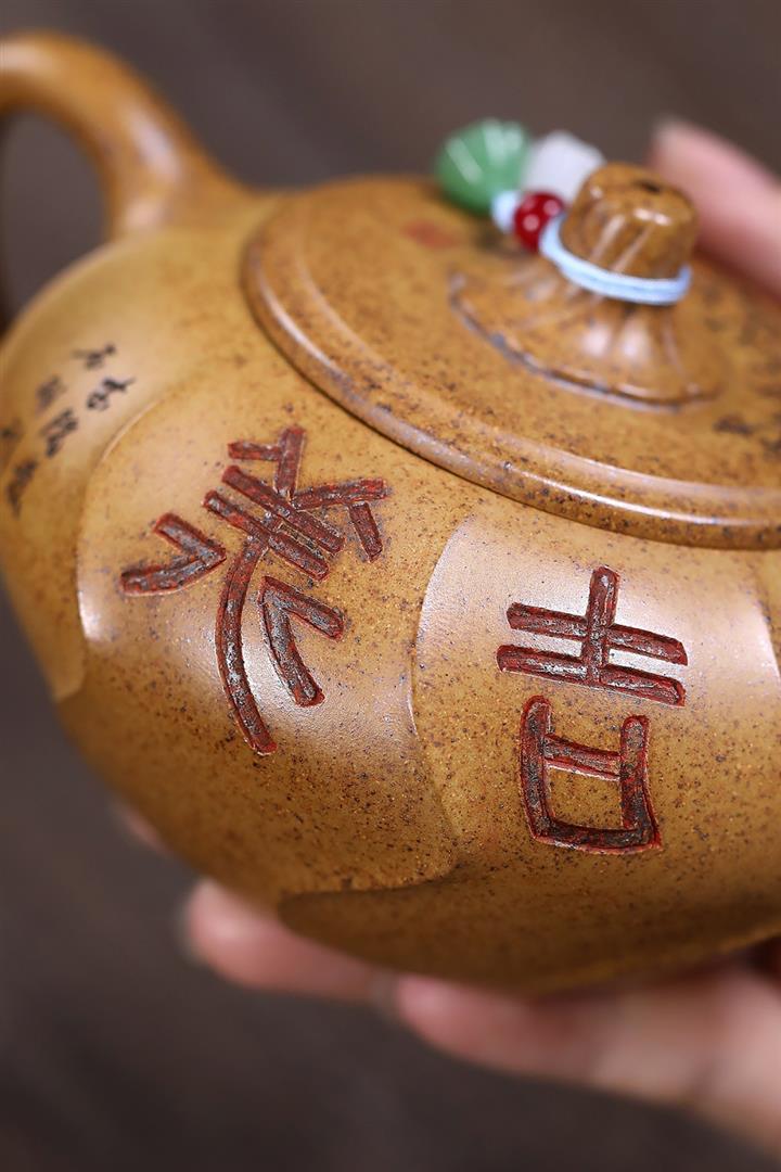 【作品介紹】此款壺形線條流暢,壺把,壺嘴,壺身壹氣呵成栩栩如生,是收藏把玩的好壺,泥料色澤古樸典雅,日久使用,漸露鋒芒,養成變化快,溫潤莊重,用其泡茶,使用的年代久,壺身就溫潤,泡出來的茶湯也就醇郁芳馨。