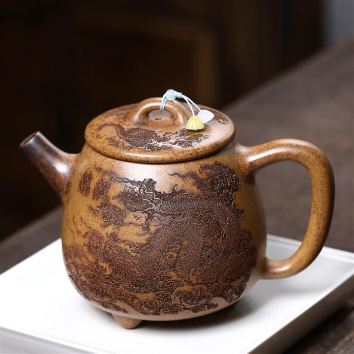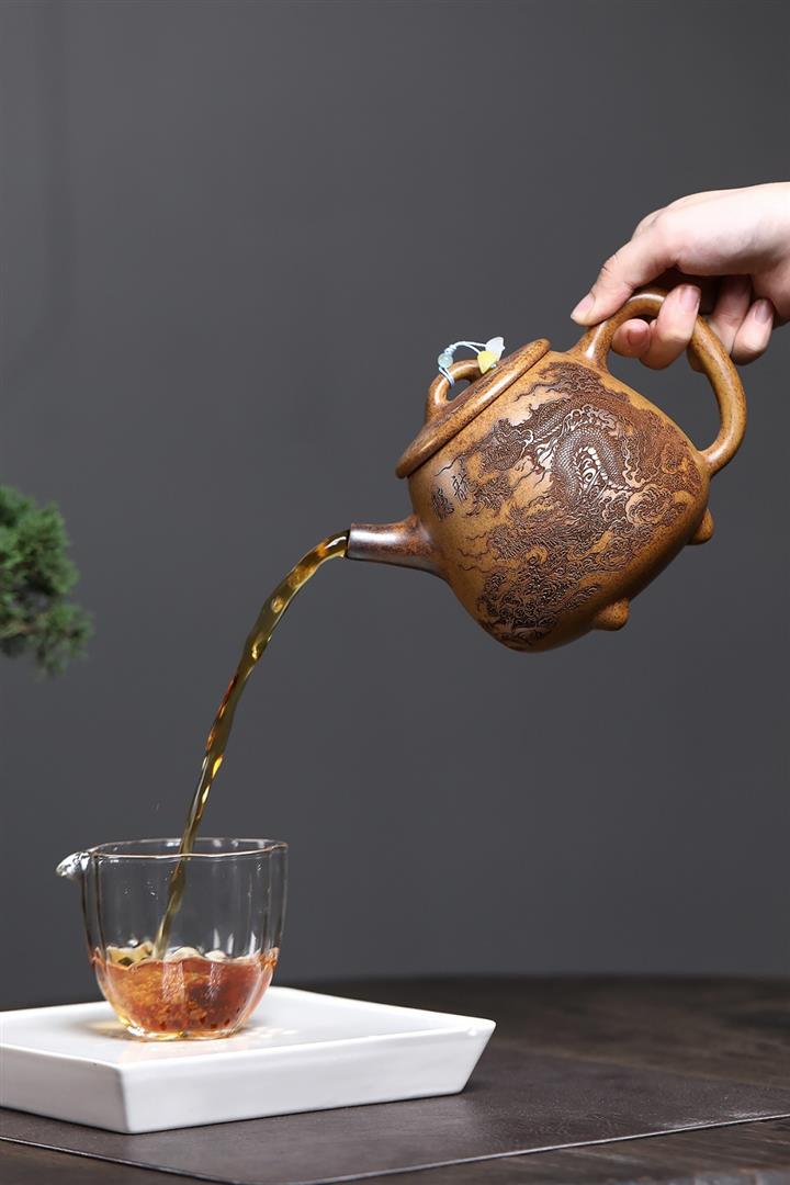 【作品介紹】此款壺形線條流暢,壺把,壺嘴,壺身壹氣呵成栩栩如生,是收藏把玩的好壺,泥料色澤古樸典雅,日久使用,漸露鋒芒,養成變化快,溫潤莊重,用其泡茶,使用的年代久,壺身就溫潤,泡出來的茶湯也就醇郁芳馨。