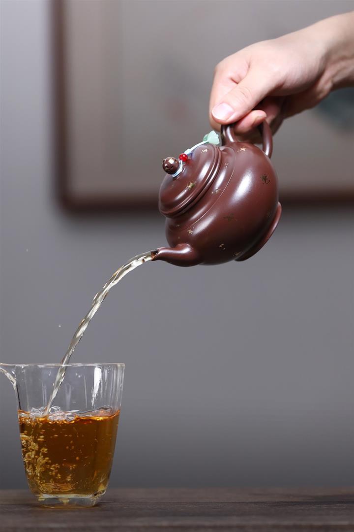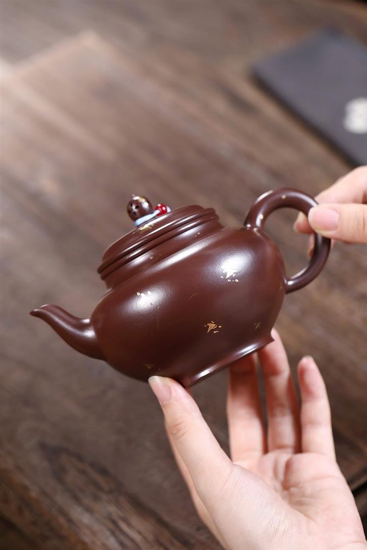 300cc原礦紫朱泥鏤金笑櫻高端茶壺POT8264