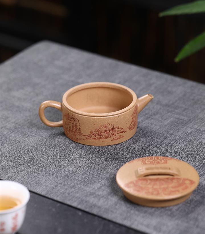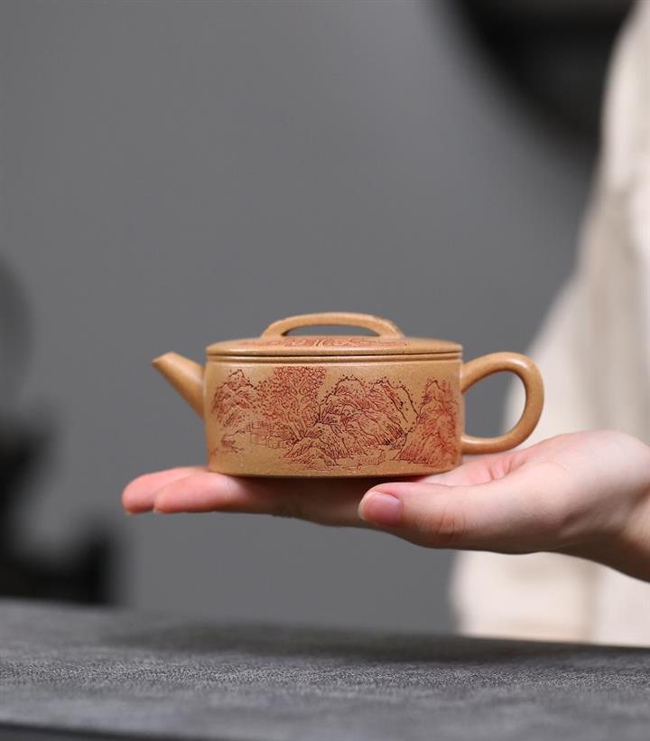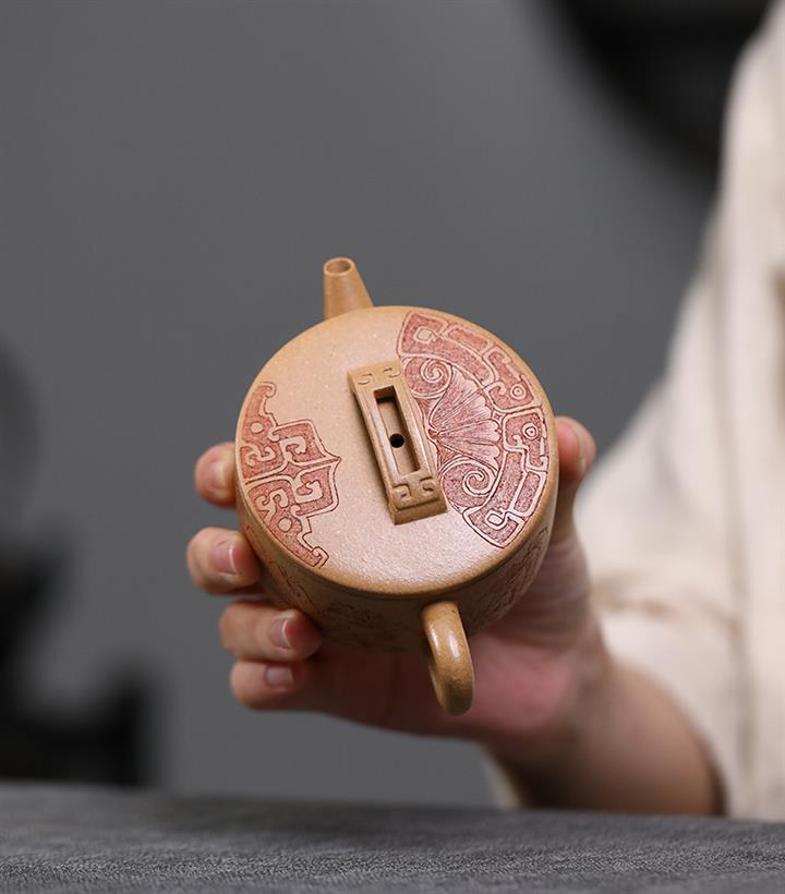 【泥料特點】砂土氣重,似淳實農民,日久使用,漸露鋒芒,養成變化,溫潤莊重。紫砂是壹種雙重氣孔結構的多孔性材質,氣孔微細,密度高。用紫砂壺沏茶,不失原味,且香不渙散,得茶之真香真味。紫砂使用越久,壺身色澤越發光亮照人,氣韻溫雅。紫砂壺長久使用器身會因撫摸擦拭,變得越發溫潤光澤。
