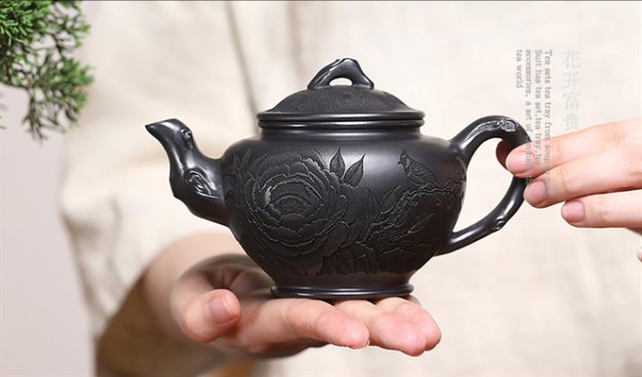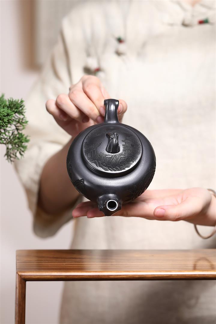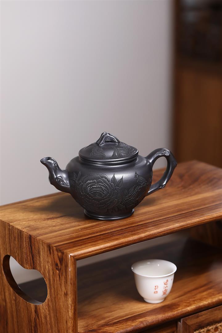 300cc原礦玄鐵黑料報春茶壺POT8295