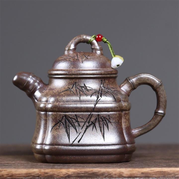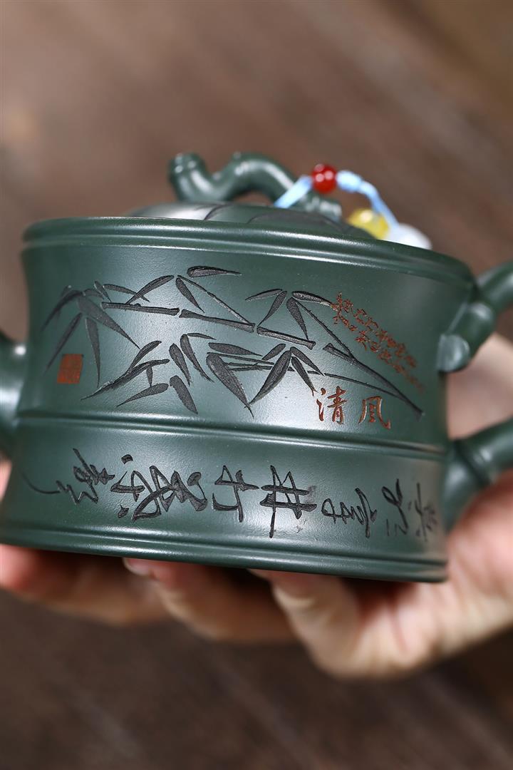 350cc原礦墨綠泥通身刻竹之清雅茶壺POT8302