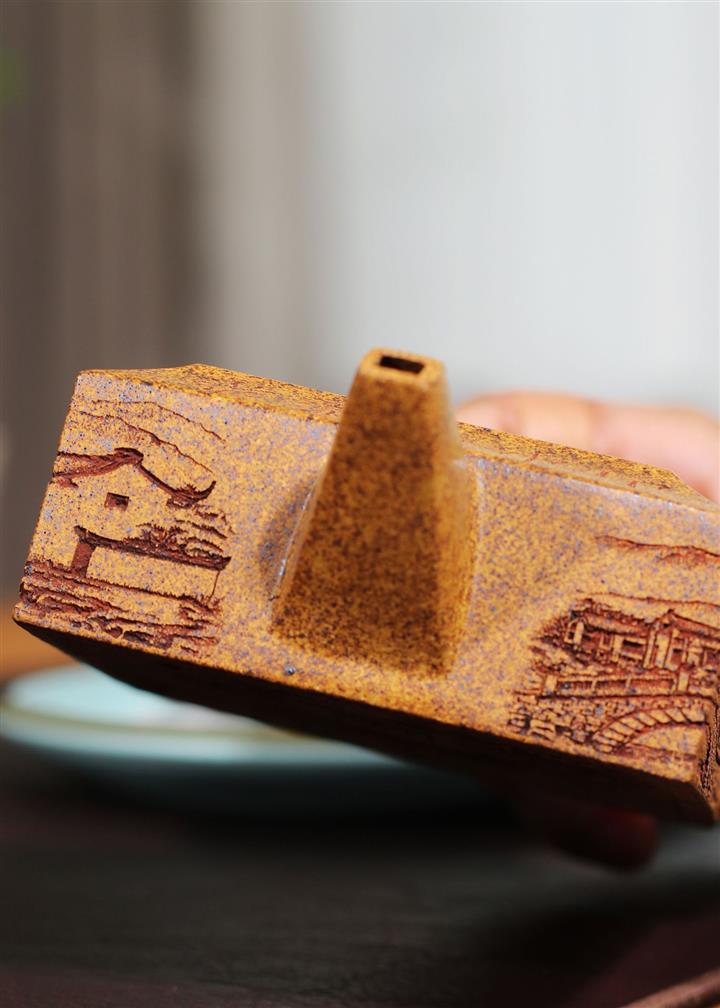 【泥料特點】砂土氣重,似淳實農民,日久使用,漸露鋒芒,養成變化,溫潤莊重。紫砂是壹種雙重氣孔結構的多孔性材質,氣孔微細,密度高。用紫砂壺沏茶,不失原味,且香不渙散,得茶之真香真味。紫砂使用越久,壺身色澤越發光亮照人,氣韻溫雅。紫砂壺長久使用器身會因撫摸擦拭,變得越發溫潤光澤。