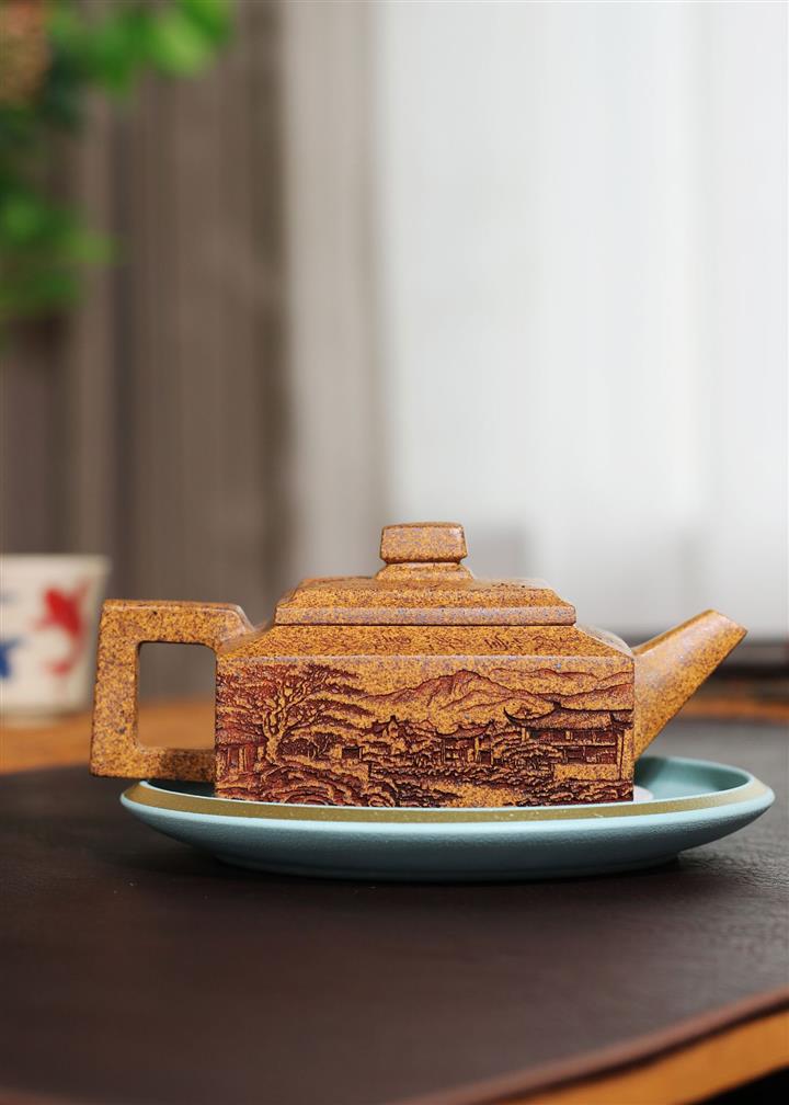 【作品介紹】此款壺形線條流暢,壺把,壺嘴,壺身壹氣呵成栩栩如生,是收藏把玩的好壺,泥料色澤古樸典雅,日久使用,漸露鋒芒,養成變化快,溫潤莊重,用其泡茶,使用的年代久,壺身就溫潤,泡出來的茶湯也就醇郁芳馨。
