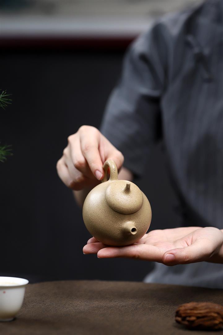 紫砂壺名家豆青泥高石瓢半手工茶壺POT4004