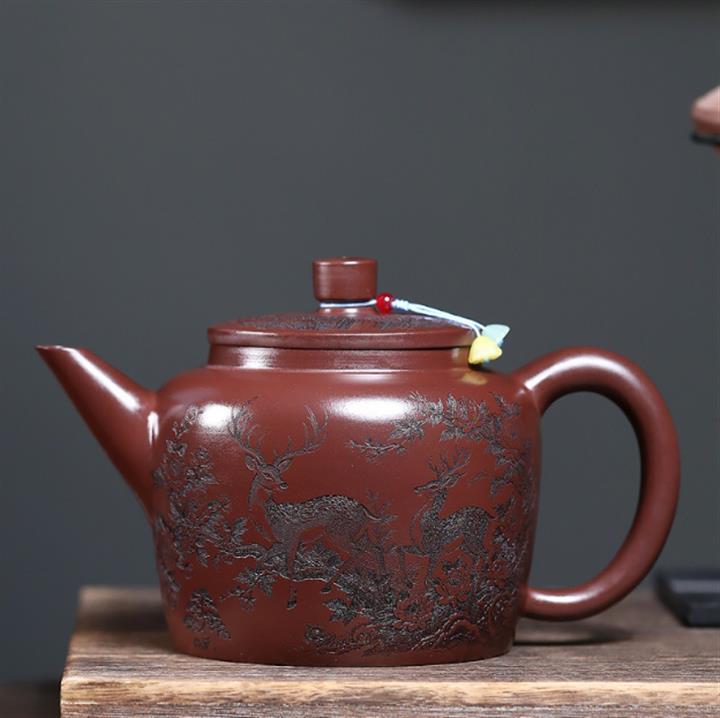 890cc原礦優質紫泥滿刻雙鹿迎瑞壺POT8155